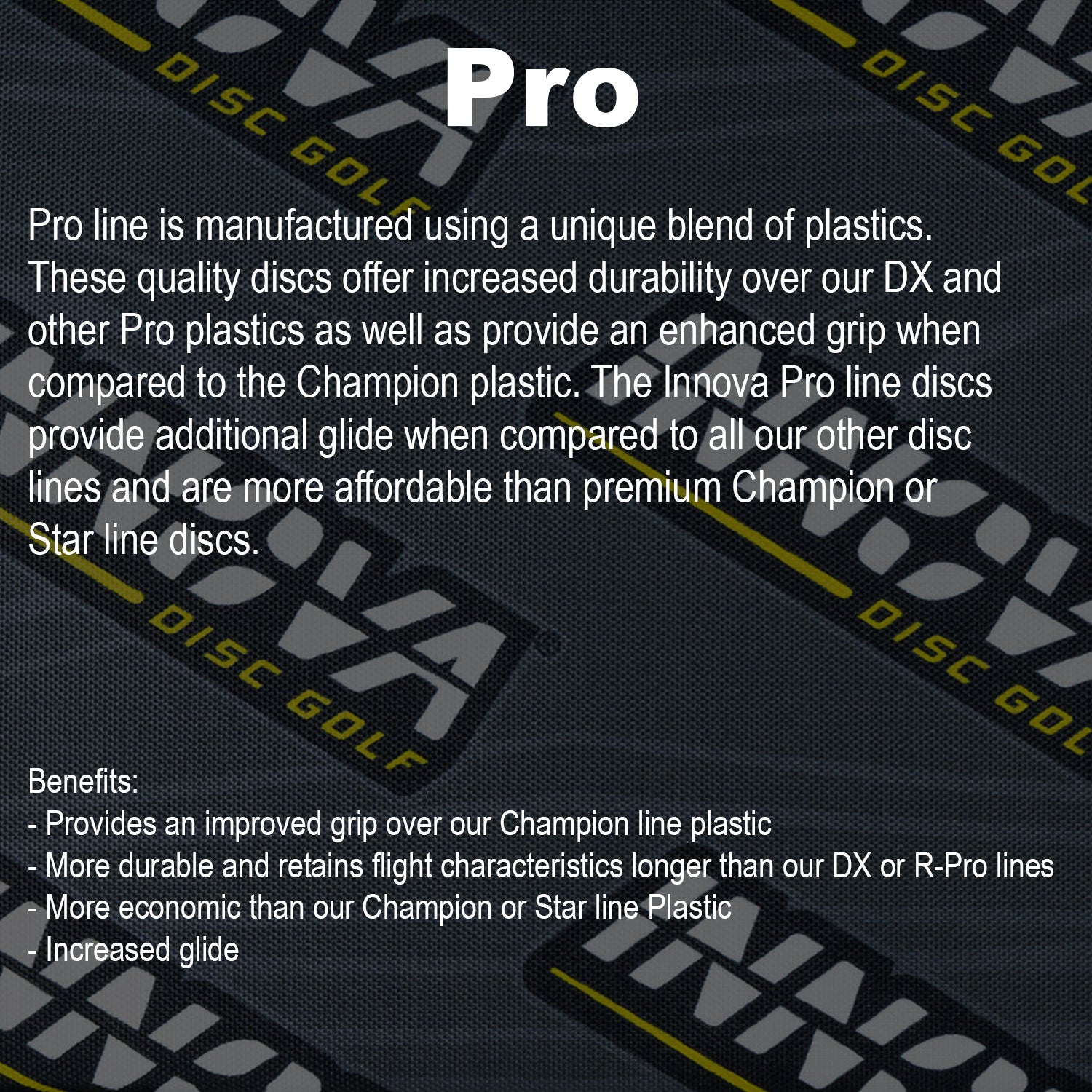 The Driver Pro line is manufactured using a unique blend of plastics. These quality discs offer increased durability over our DX and other Pro plastics as well as provide an enhanced grip when compared to the Champion plastic. Our Driver Pro line discs provide additional glide when compared to all our other disc lines and are more affordable than our premium Champion or Star line discs.