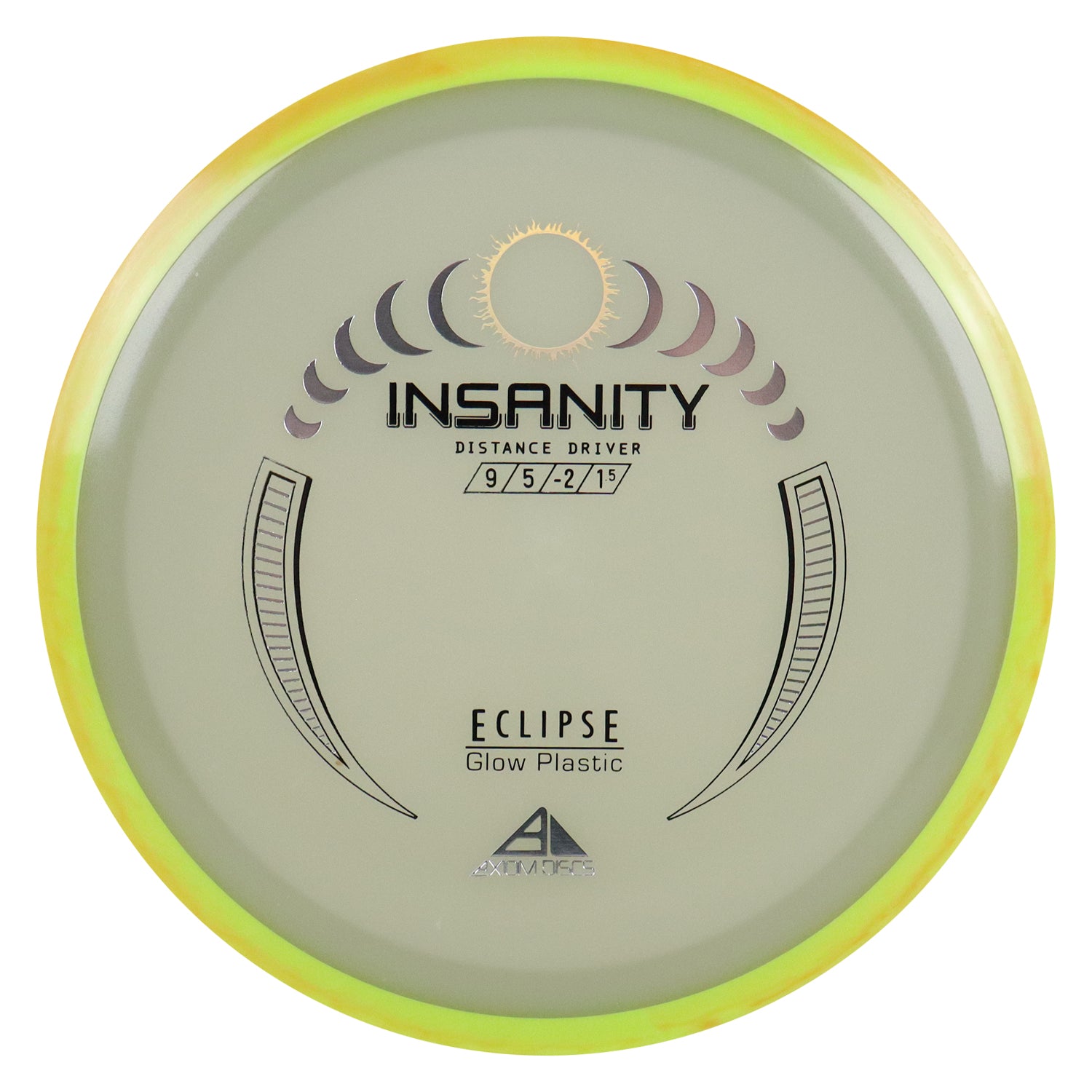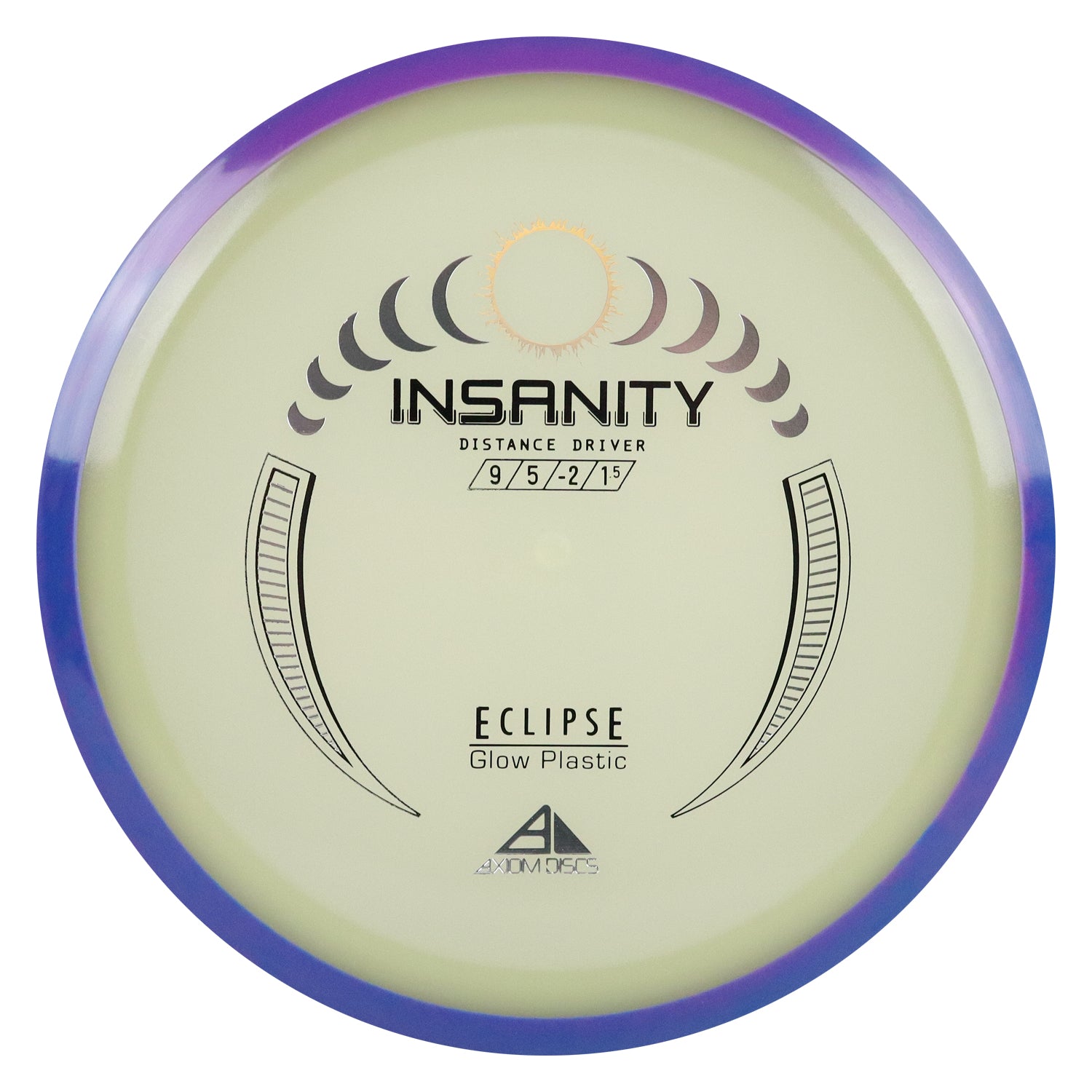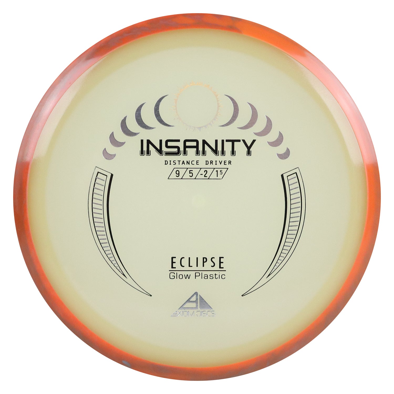 Another Special Edition release (for Halloween of 2021), the Eclipse Insanity is making its absolutely glowing return as a stock offering! Maintaining flight numbers of 9 | 5 | -2 | 1.5, the Eclipse Insanity is now available any time you need a consistent stable to understable distance driver for your bag. High power players will have a precise flip-up or turnover disc for day or night, while average power players will have a remarkably straight distance driver. Designed with a softened profile to mimic a more worn-in disc, explore the multitude of shot shapes the Eclipse Insanity can bring to your game by grabbing your own from your favorite local or online retailer!