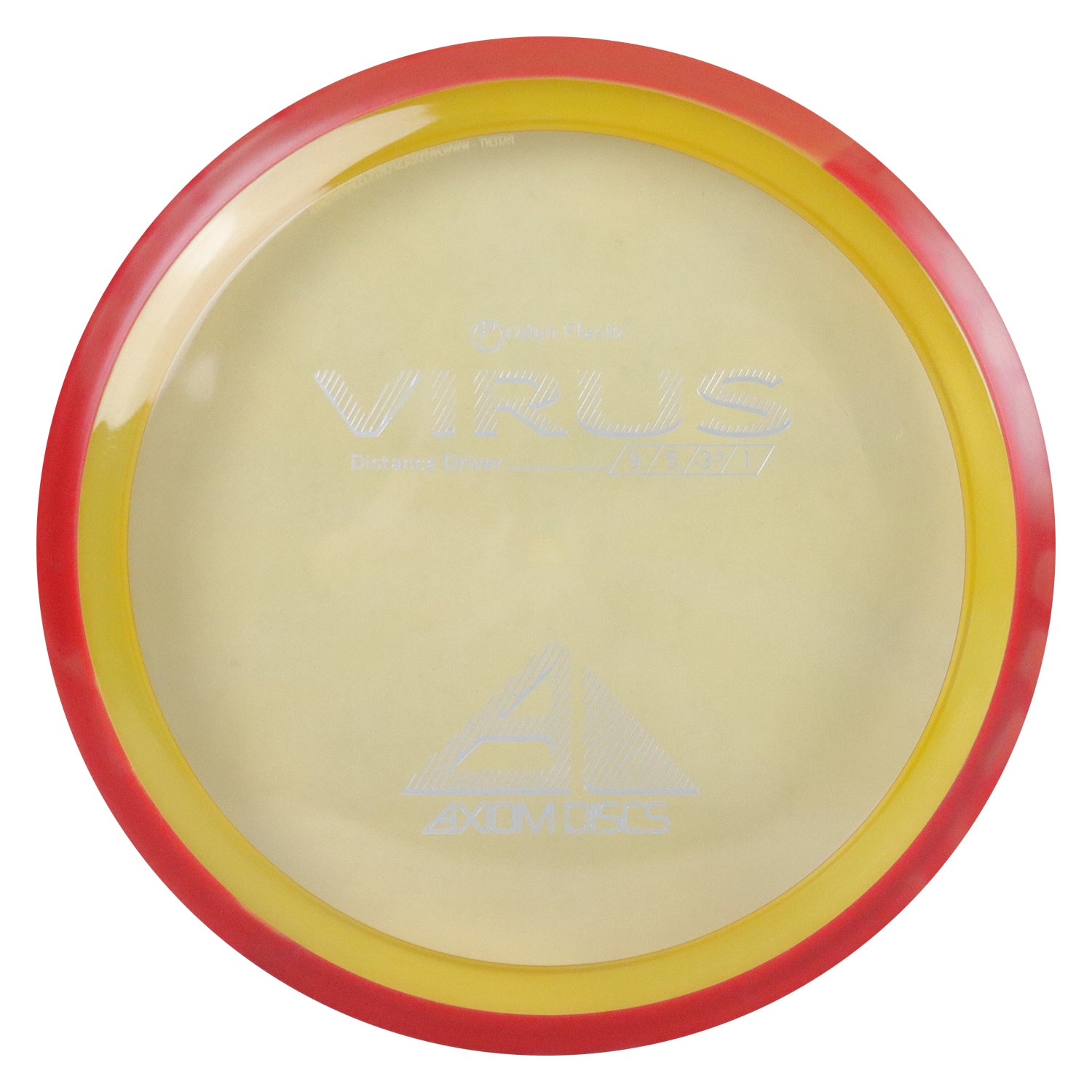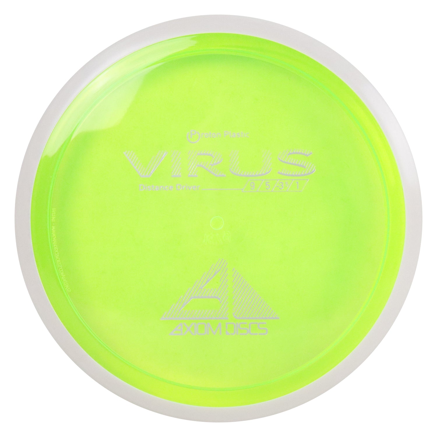 The virus is an understable distance driver. The Virus is Axiom’s easiest to throw distance driver, with a glide and responsive understability that keeps it in the air. Power throwers will be able to flex huge turnover shots with straight forward fade. Average throwers will be able to extend and shape lines using the Virus’ turn and gentle fade. Compared to the MVP lineup, the Virus resembles a worn-in Impulse. Our original premium plastic blend, Proton is a translucent core material with stunning optical clarity and vibrant colors. Proton has similar durability and slightly more grip than our Neutron plastic. The colorful candy plastic core yields a different aura to each model and especially suits LED-lighted night play. Axiom Proton features vibrant color GYRO rims.