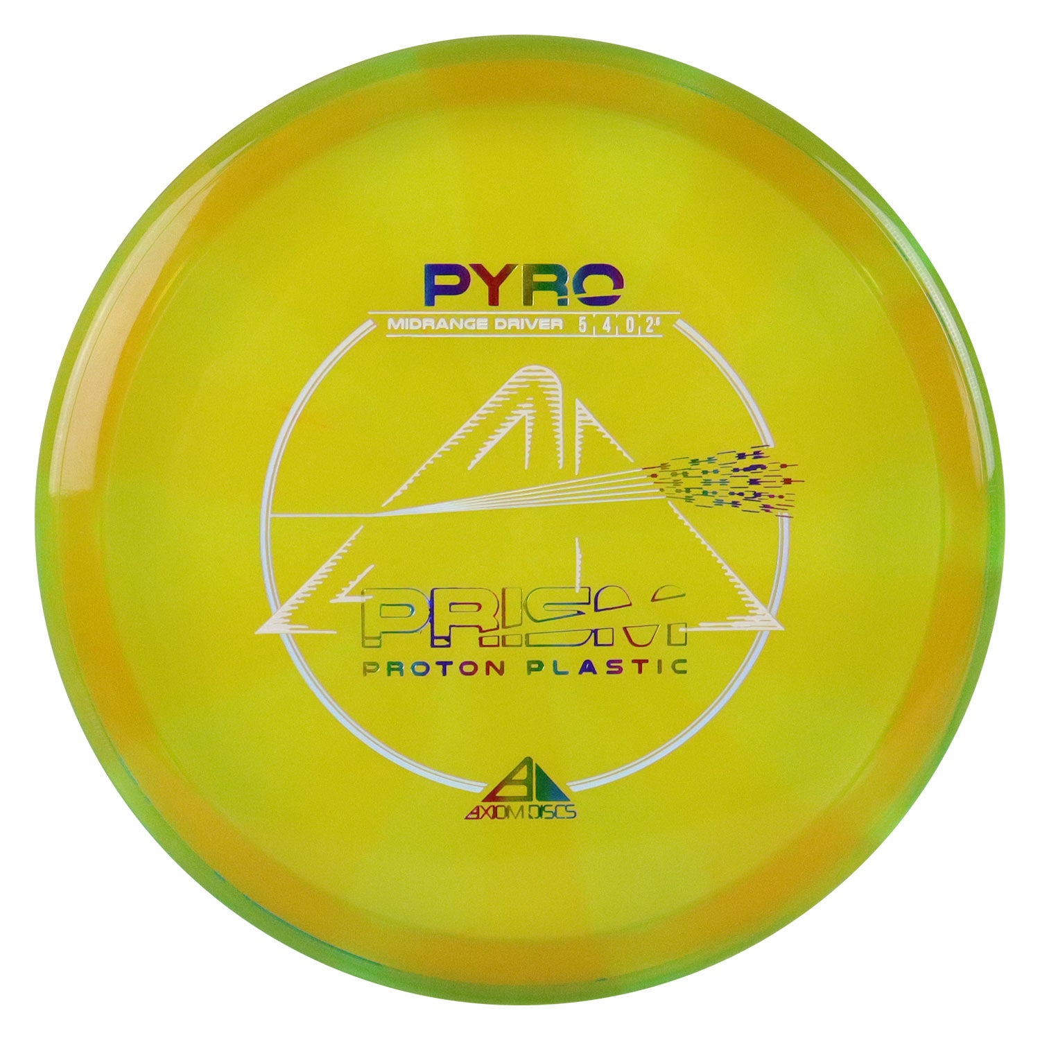 The Prism Pyro was designed as Axiom’s first overstable Midrange with more glide than the MVP Deflector and a commanding stable finish. The Pyro has enough stability for consistent flights in strong winds and powerful throws without losing its line and turning off target. Our original premium plastic blend, Proton is a translucent core material with stunning optical clarity and vibrant colors. Proton has similar durability and slightly more grip than our Neutron plastic. The colorful candy plastic core yields a different aura to each model and especially suits LED-lighted night play. Axiom Proton features vibrant color GYRO rims.