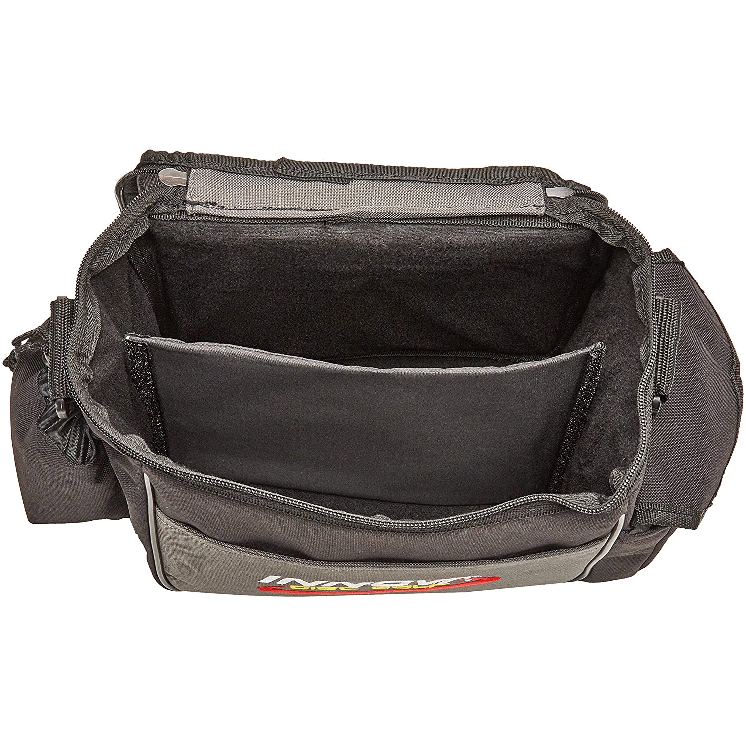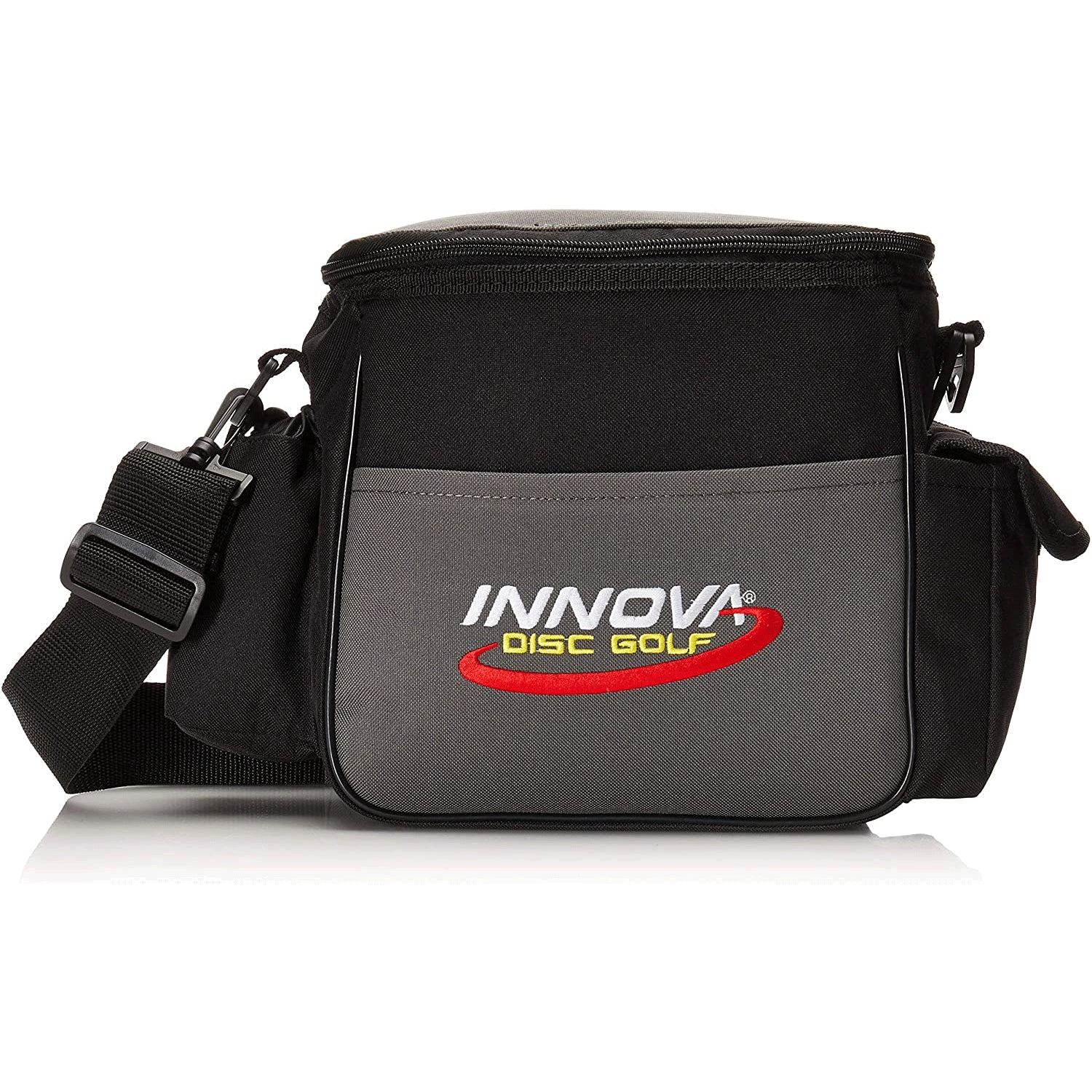 The Innova Standard Bag is a high quality, durable, and lightweight bag. It is designed for players that do not wish to carry a large bag. The Standard Bag holds up to 12 discs with room for accessories. There is a quick access front putter pocket as well as a zippered rear compartment. You can also carry up to a 32 ounce bottle in the cinching bottle holder. Features: Holds 8-12 golf discs, Water resistant, Padded adjustable strap, Reinforced bottom, Bottle holder with cinch strap, 2 Outer pockets, 1 mesh zippered pocket on inside of flap, Soft terry inside and velcro dividers allowing many disc storage options. Zippered rear compartment for scorecards, pencils, rulebook and snacks. Snug putter pocket. *Any photographed discs or accessories are not included.