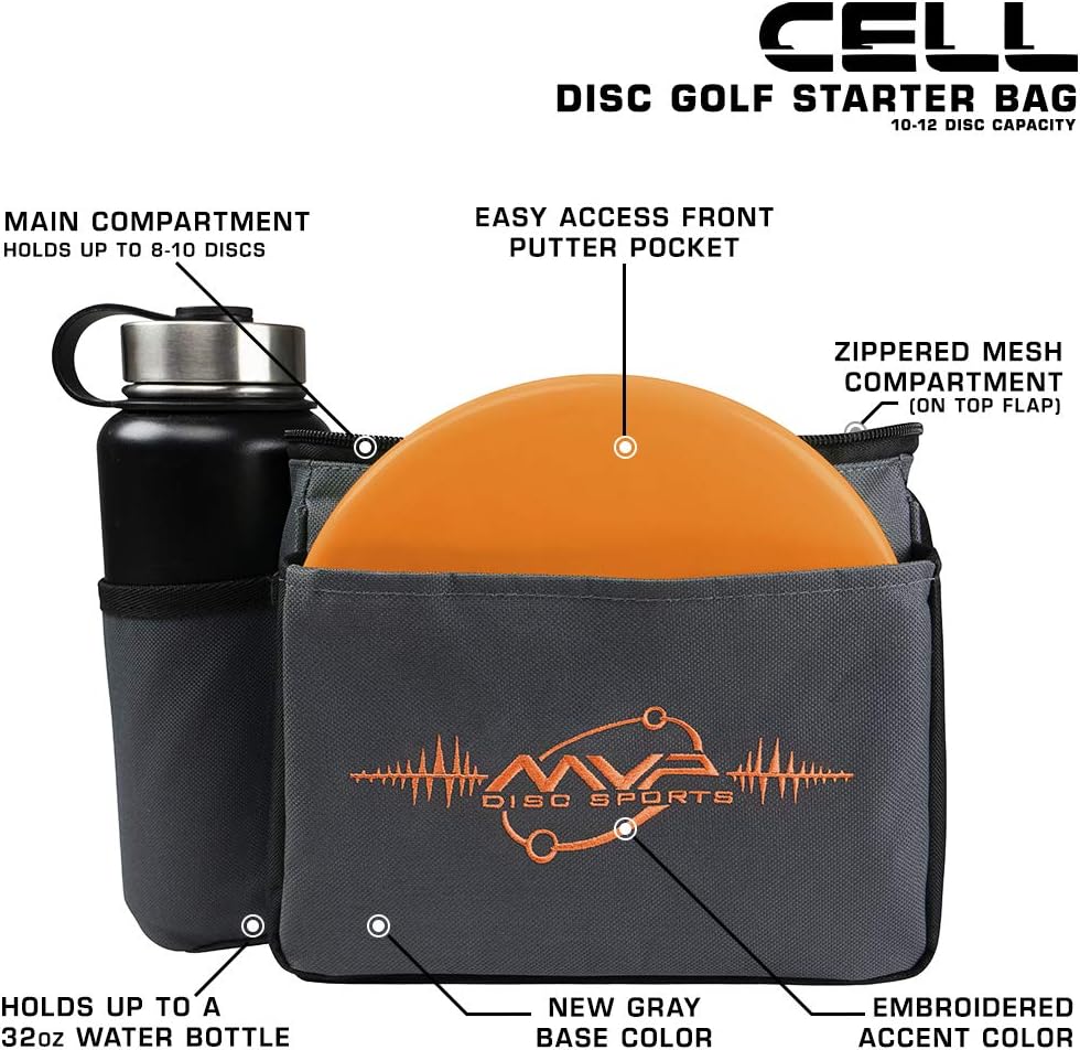 The MVP Cell Bag is the entry-level disc bag built to carry your essentials out on the course. The Cell bag can hold 6 to 10 discs in its main compartment, and 2 more in the putter sleeve and your personal items in an inner mesh pocket. The new Cell bags have been upgraded to more abrasion resistant and water-resistant material. (Discs, Water Bottles, and other accessories are not included)