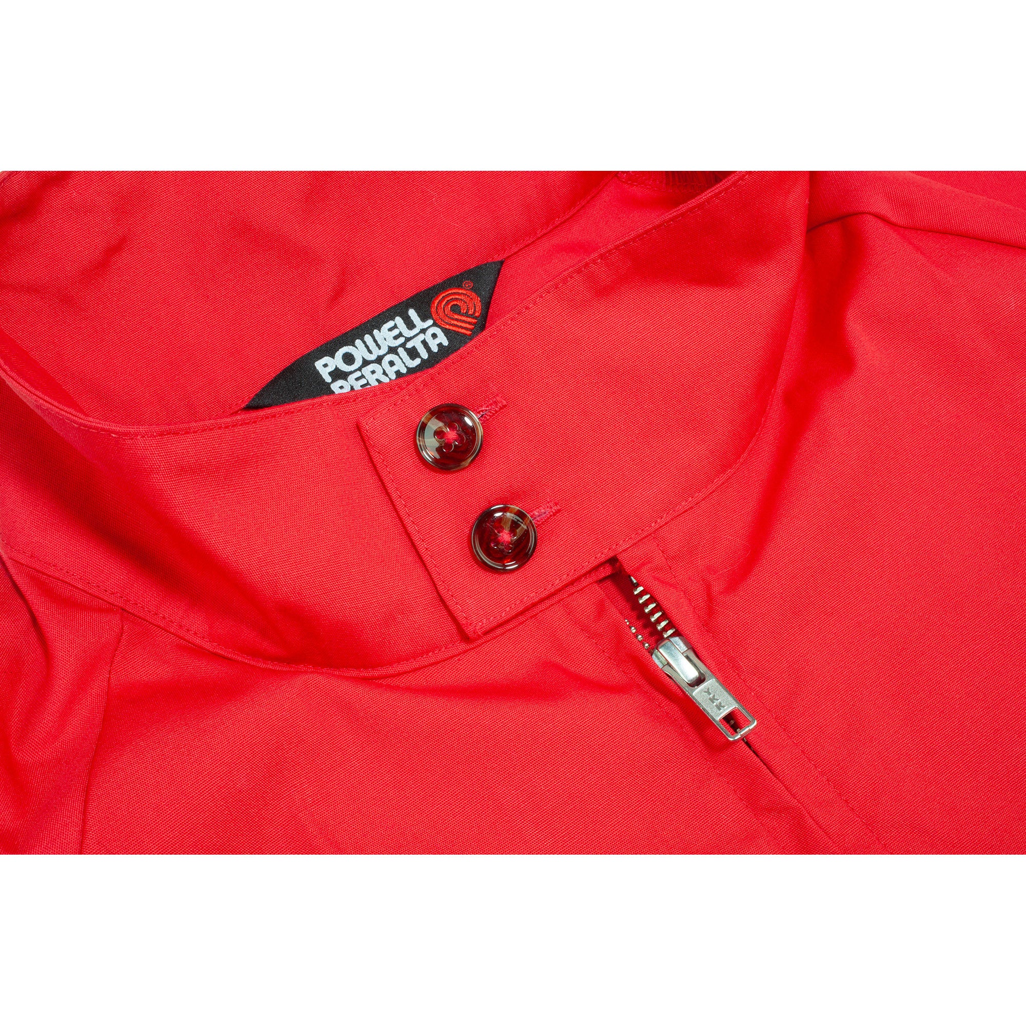 Powell Peralta copied their classic jacket exactly from the original style to bring back that vintage Powell Peralta look. Lightweight, unlined 80/20 poly/cotton twill. Great for layering. 80% Polyester 20% Combed cotton. Direct screen-print front chest and back graphics. YKK zipper. Unlined. Two single welt front pockets. Elastic on back waist for fit. Coordinating marbled resin buttons. Herrington collar.