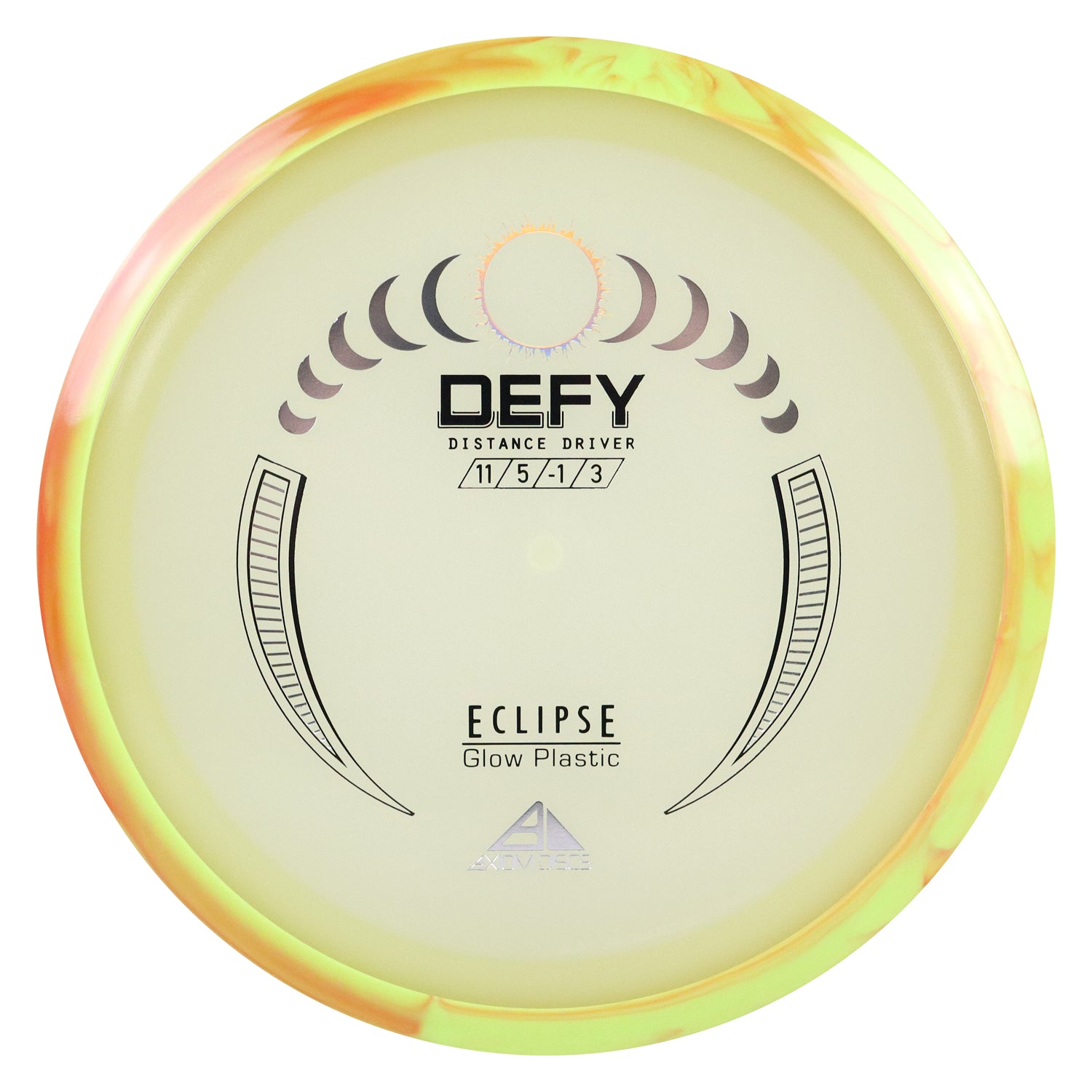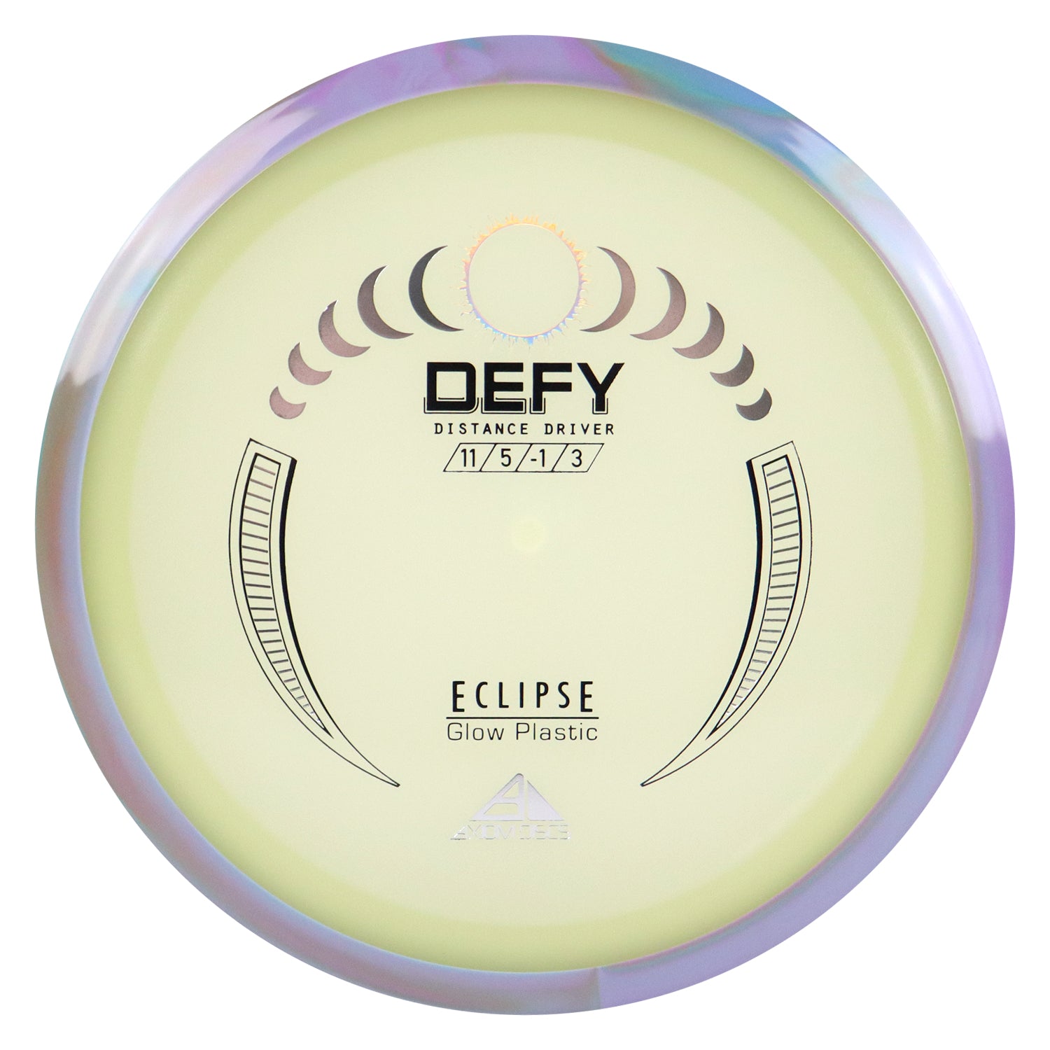 The Axiom Defy is now available in our industry-leading Eclipse plastic all year! Known for reliable distance, whether you’re throwing into the wind or with power, the Defy is perfect for long, straight, high-power shots with a forward-pushing fade and reliable lower-powered overstability. Defy headwinds and the darkness with the Eclipse Defy!