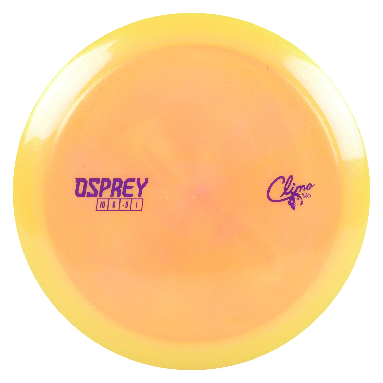 Soar through the course with the Climo Disc Golf Osprey. Sleek, fast, and graceful like its namesake, the Osprey is perfect for players seeking easy distance with a touch of finesse. This 10-speed driver is versatile enough to suit any skill level. Novice and intermediate golfers will love its controllable understability, which makes it easy to achieve long, smooth turnover shots and maximum distance. Meanwhile, advanced and pro-level players will appreciate the Osprey's ability to carve technical lines, deliver massive hyzer-flips, and glide through the air with precision, making it an indispensable tool for attacking the fairway.