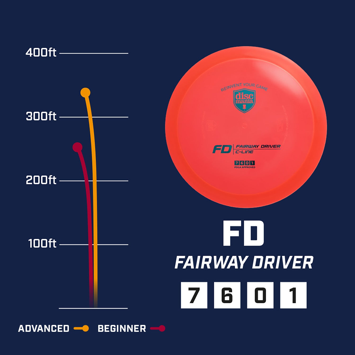 This is the FD, our most popular fairway driver - Reinvented. Famous for its extremely straight flight path combined with high glide and controllability, the FD has a place in everyone’s bag. Beginners will fall in love with the FD’s straight-to-stable flight path and dependability off the tee, whereas more experienced players will enjoy FD’s point-and-shoot flight for straight drives. Don’t let the speed rating fool you, the FD glides surprisingly far!