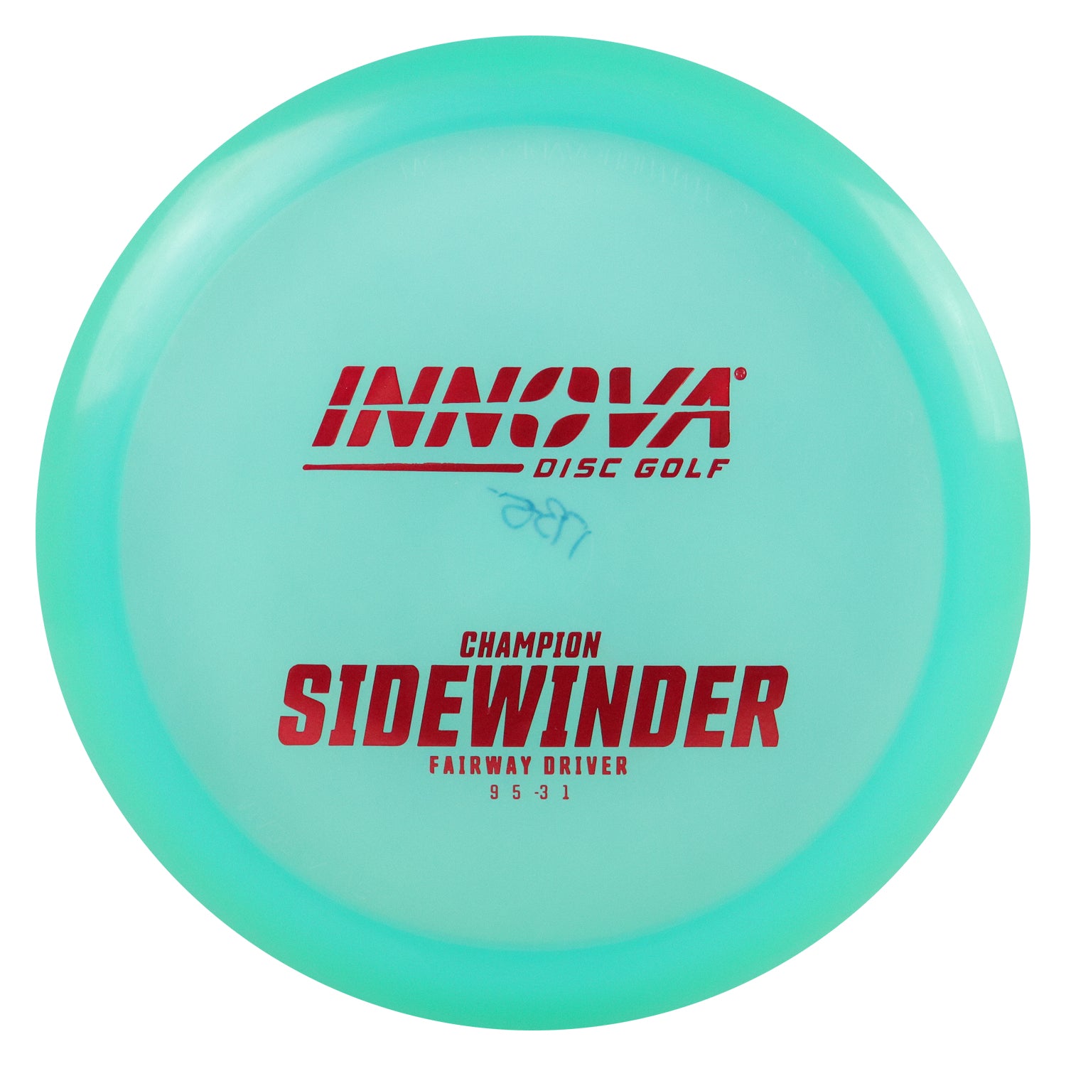 The Sidewinder is a fast distance driver with predictable high speed turn and plenty of glide. An out of the box roller. The Champion line is produced with a hi-tech plastic that provides outstanding performance and durability. Champion discs are distinguished by a beautiful clear appearance. Designed for professional players, Champion line discs are usually a little firmer and more stable than the same model in other plastics. Whether used in heavily wooded situations, or on extremely rugged courses, our Champion line plastic will continue to perform predictably and avoid damage better than any other plastic.