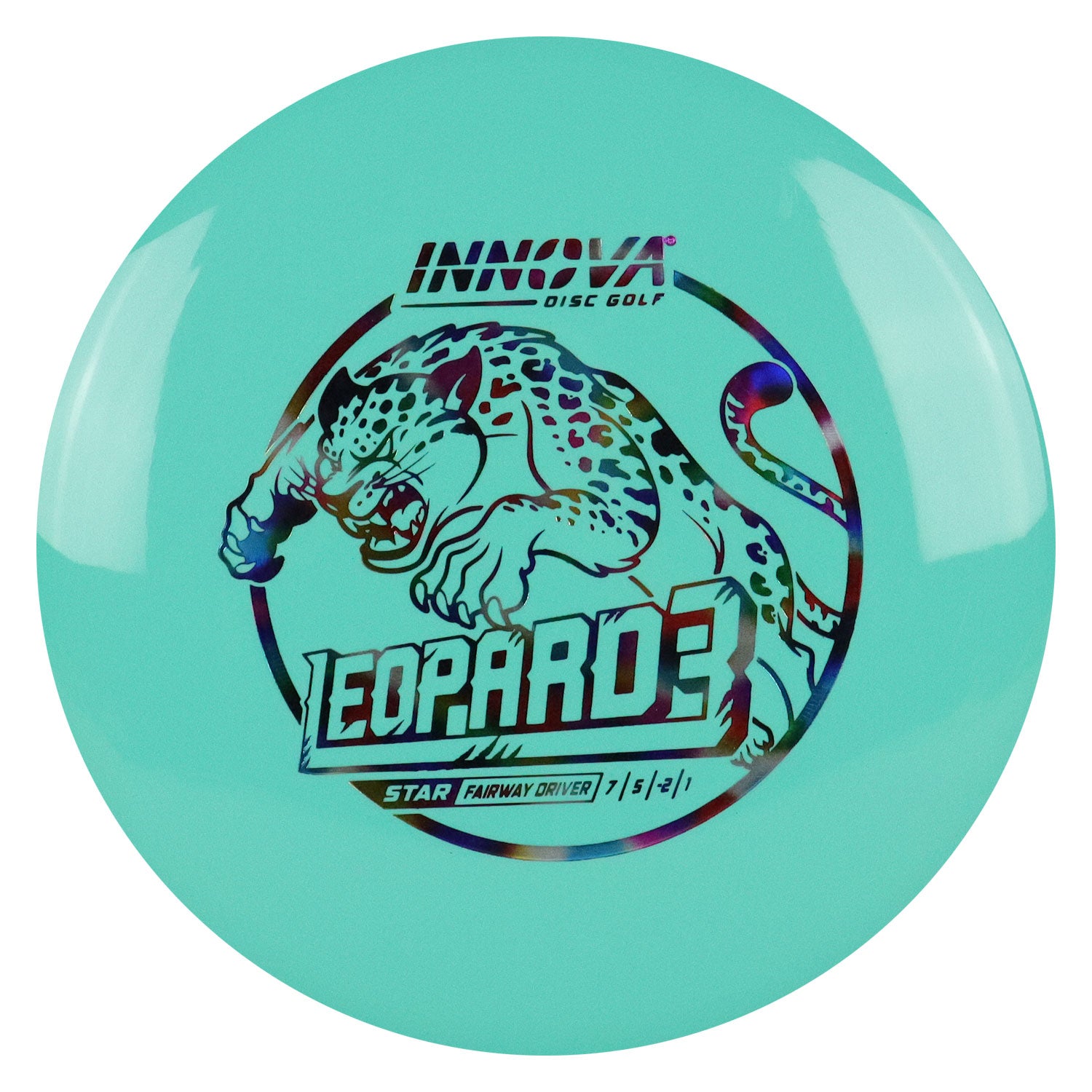 The Leopard3 is a flatter, faster Leopard. Very controllable right out of the box. The Star line is created with a special blend of grippy, resilient polymers. Star plastic offers the same outstanding durability of our regular Champion plastic, plus improved grip like our Pro plastic. Star discs have the same flight characteristics as Champion discs, but are slightly less firm. High performance, longevity, and superior grip make Innova Star line discs a great choice for your game.