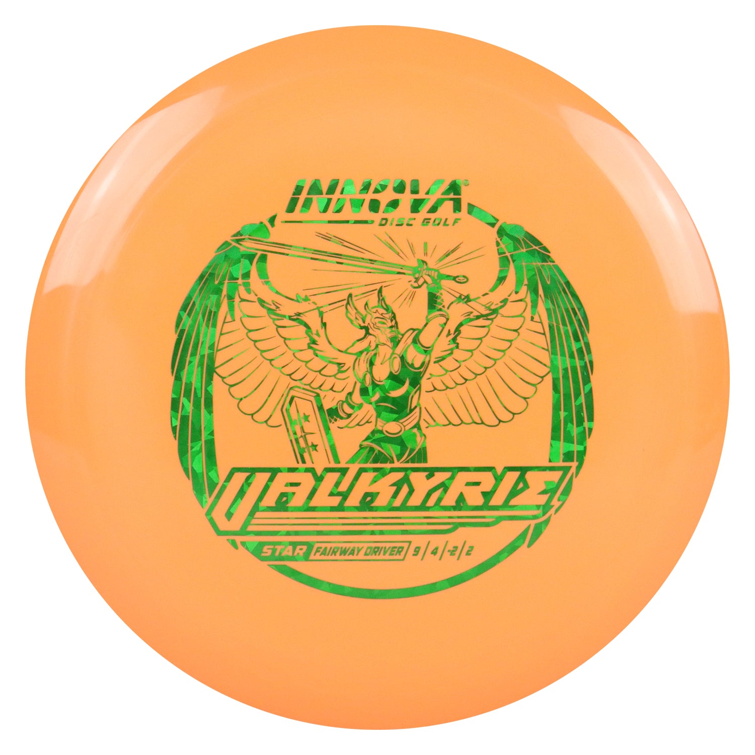 The Valkyrie is a turnover distance driver with great glide. A great choice for tailwind or downhill drives. The Star line is created with a special blend of grippy, resilient polymers. Star plastic offers the same outstanding durability of our regular Champion plastic, plus improved grip like our Pro plastic. Star discs have the same flight characteristics as Champion discs, but are slightly less firm. High performance, longevity, and superior grip make Innova Star line discs a great choice for your game.