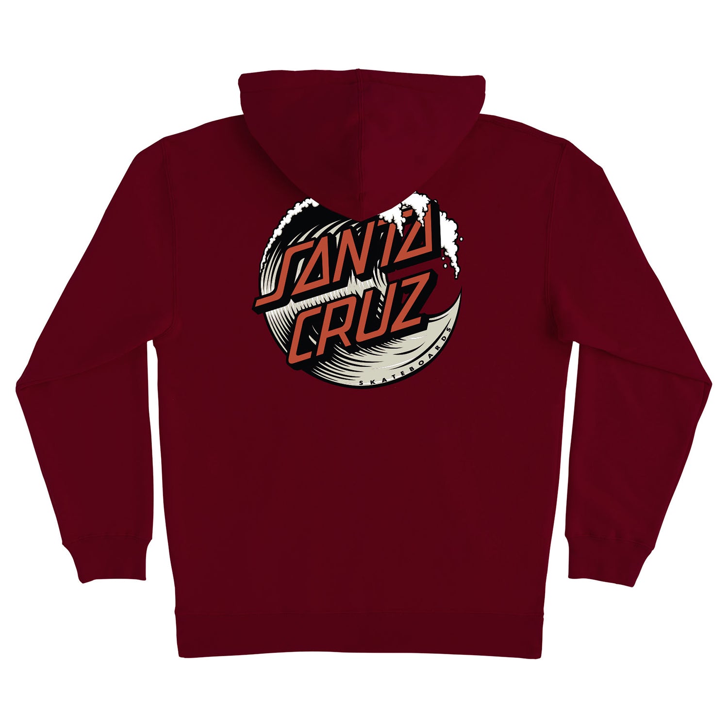 The Santa Cruz Wave Dot men's hooded pullover heavyweight fleece sweatshirt features small front and large back Santa Cruz Wave Dot logos printed in soft hand ink.