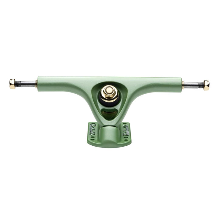 TRUCKS: The 50 degree Paris V3 is everything a longboard truck should be—playful, lively, smooth, and strong. Unbelievably strong. The V3s are produced using new, proprietary alloy forming process, which utilizes techniques derived from casting, extrusion and forging. This gives the V3 a molecular structure that provides strength far beyond any other cast truck on the market. The new manufacturing process also allows use of true T6 heat-treatment, offering further durability.