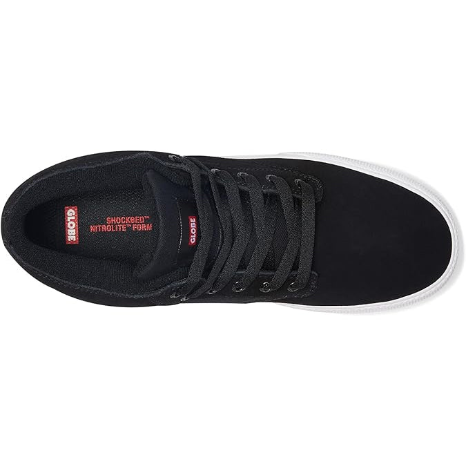 A Mid skate silhouette from Globe that allows for ultimate board feel and ankle support. Simple skate casual lace with blucher toe. Fully bound paneling. Seamless toe box free flex.