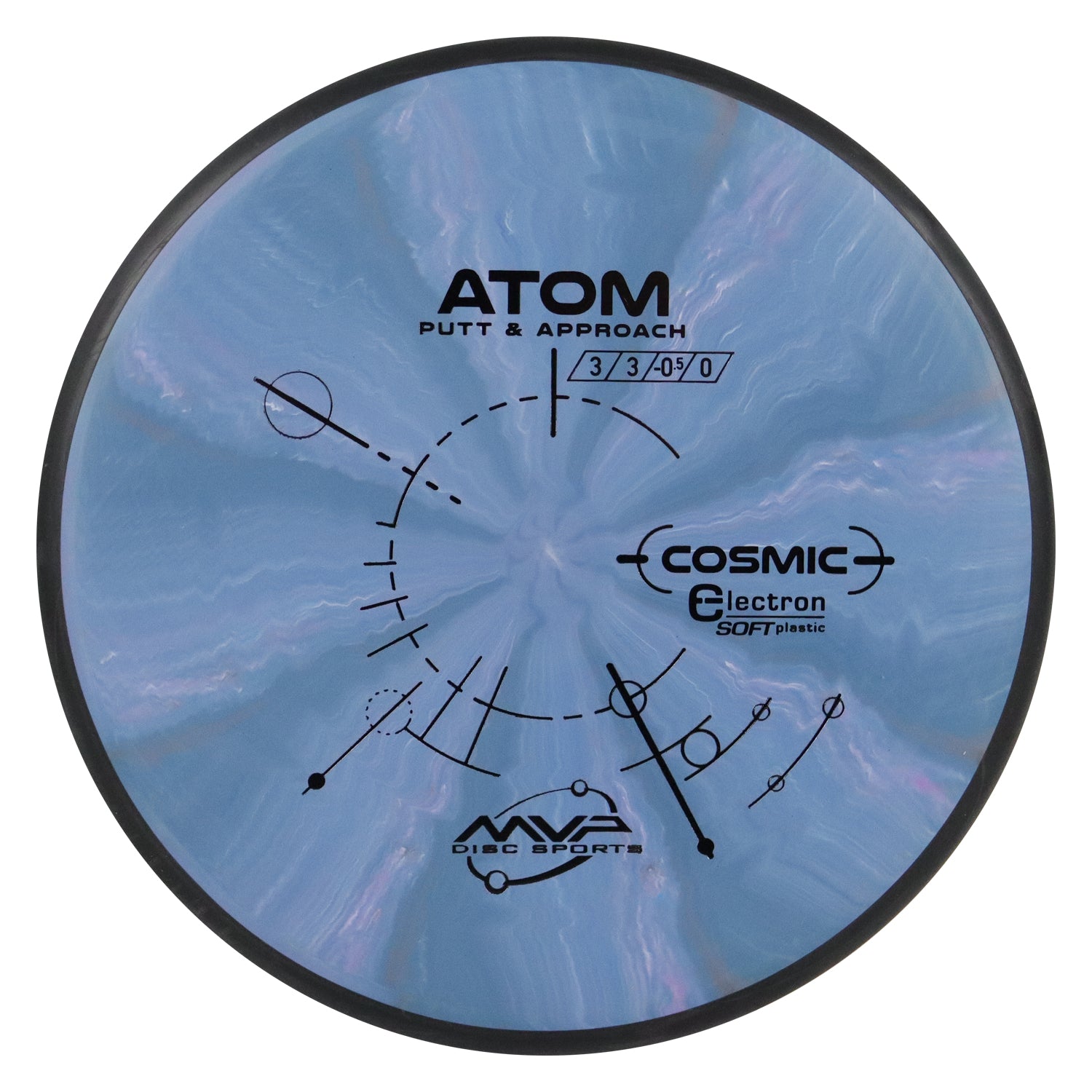 The Atom is a straight-stable putt and approach disc. The Atom is a straight flyer with enormous potential off the tee and on long approaches. Right off the shelf, the Atom has a neutral stability with just a bit of fade. In premium GYRO® plastics the Atom will retain its neutral stability indefinitely. In Electron baseline plastic the Atom will wear into an extremely straight and floaty putter, with extra tactile feedback inside the circle or in adverse weather. Premium color enhanced Electron blend. Plethora of bright color swirls. We strove to reinvent baseline with our innovative Electron plastic. This ultra-grippy all-weather material will wear its battle scars with pride and fly straighter with each hit. While retaining the GYRO effect for superb line-holding, the matte texture of Electron produces exceptional grip for confident putting and throwing. Although a premium disc twice-molded with precise blends can hardly be considered base, Electron is most similar to chalky baseline putter blends on the market. Electron comes in a regular, Soft, and Firm variations to help you find that perfect feel and grip you can trust.