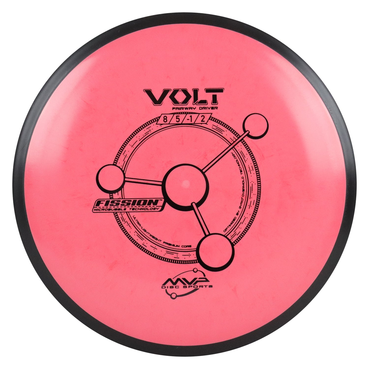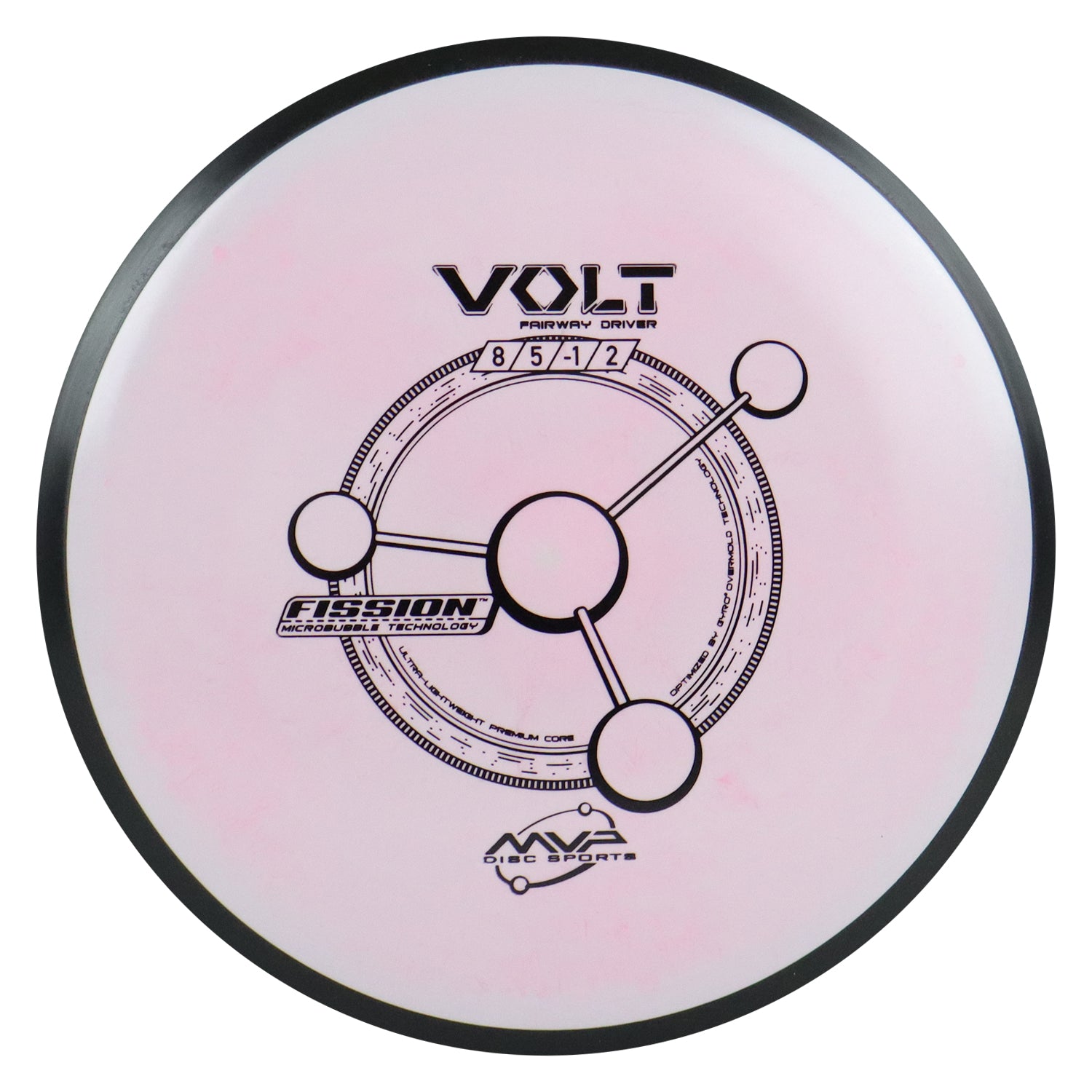 The Volt is a slightly overstable fairway driver. The Volt is geared for long, accurate placement shots. The Volt can hold a long straight line and with a solid, forward penetrating fade. Reach for the Volt when accuracy is needed on long, tight fairways. Fission is our breakthrough lightweight material. Fission Microbubble Technology can be used to create an exceptionally stable ultralight disc, or to increase the GYRO effect in a medium weight disc. Fission is opaque with a matte finish. Despite any comparisons, Fission is in a class by itself as the only lightweight/bubble plastic to ever address weight distribution. Sellers and throwers are constantly amazed that Fission exceeds the low expectations set by single-piece lightweight discs.