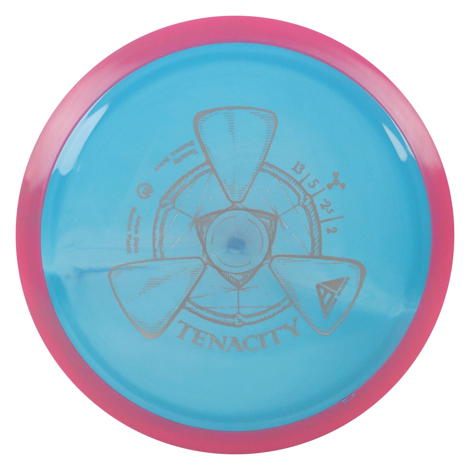 Tenacity is Axiom’s understable bomber from the new high-speed 23mm distance class. With proper form the Tenacity easily qualifies as “sneaky long”. Tenacity is best compared to a worn MVP Catalyst, and features the familiar evenly domed top to promote distance-covering glide.