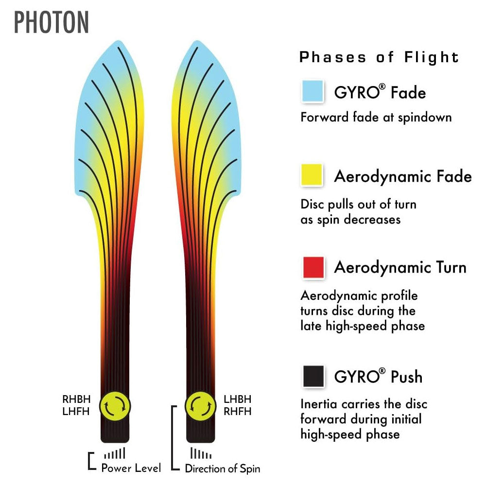 The Photon is best described as a longer Tesla, with power throwers able to achieve some flight extending turn, and all throwers getting a reliable fade. The Photon is naturally headwind resistant but average power throwers can use a headwind to emulate those extended flights of high power throwers.