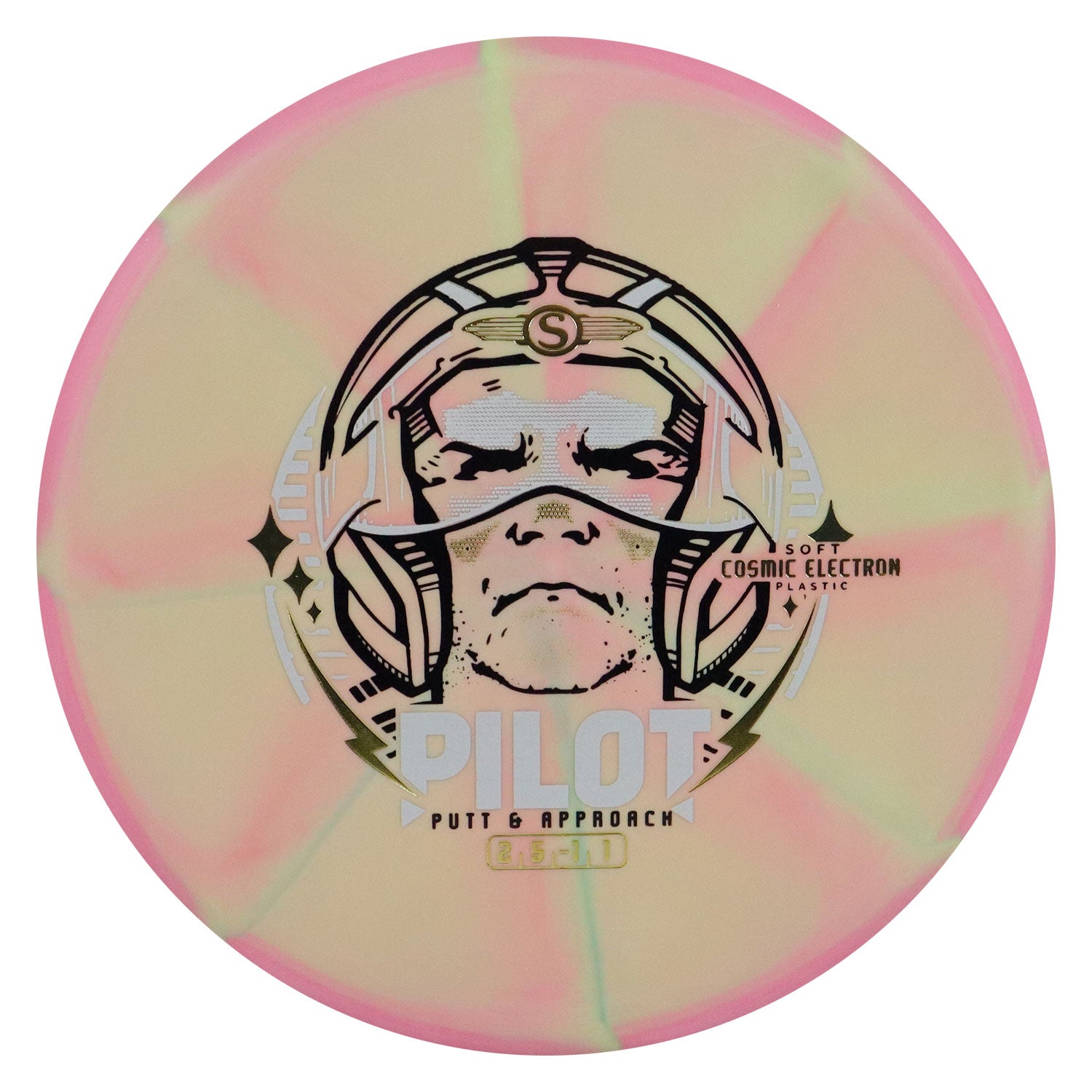 Streamline Disc Golf Cosmic Electron Pilot Soft Putter 2/5/0/1 Lime Pink/Gold 172 grams