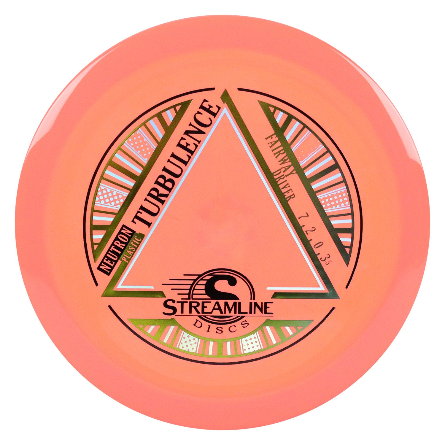 Streamline Disc Golf Neutron Turbulence Fairway Driver 7/2/0/3.5 Peach Mango/Gold Olive 175 grams