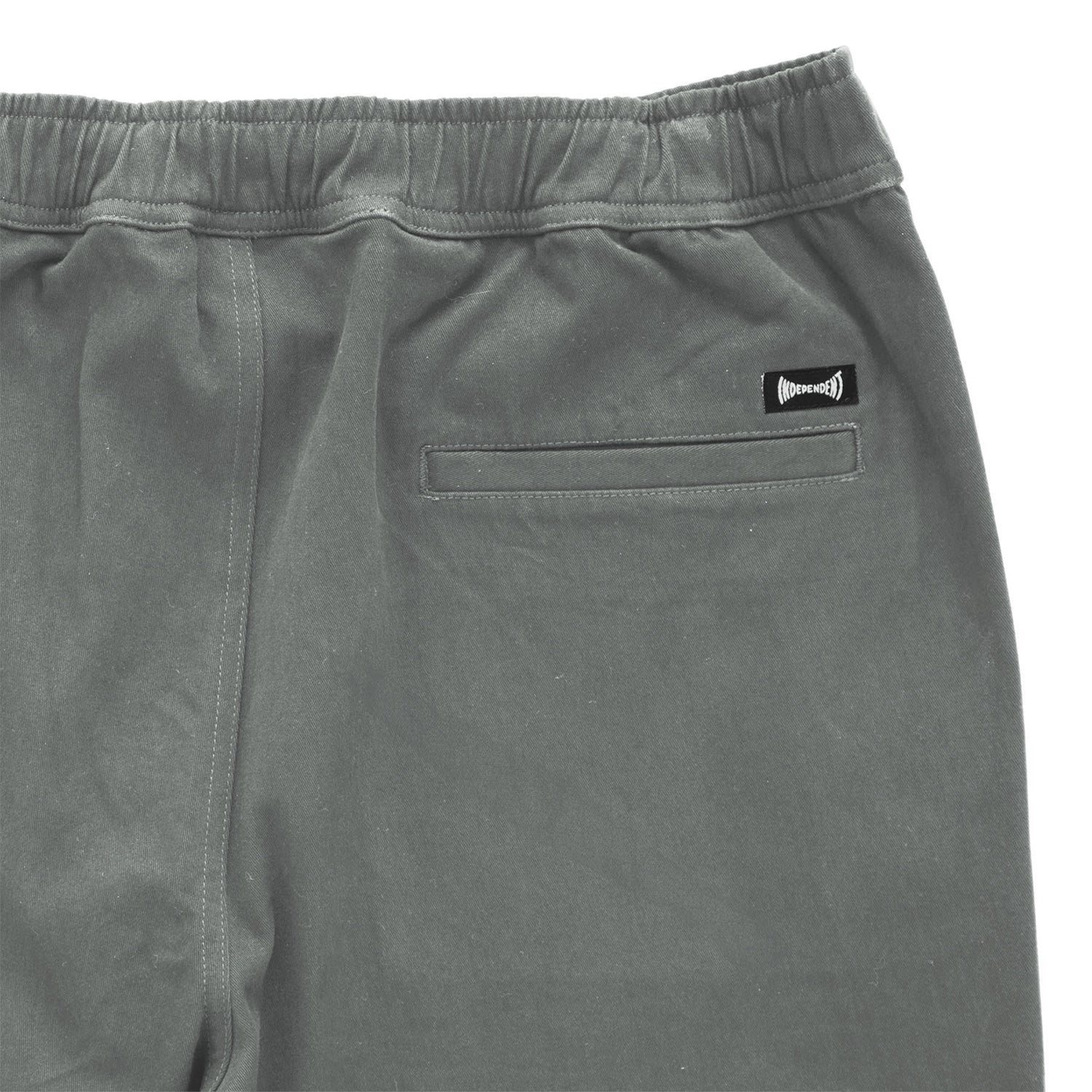 The Independent Span men's baggy fit, chino skate pant features elastic waist and inner drawcord, Independent Span logo at front leg and back welt pocket. Product Features: Men's baggy fit, chino skate pant. Elastic waist and inner drawcord. Independent Span logo at front leg. Back welt pocket. 98% Cotton/2% Spandex.