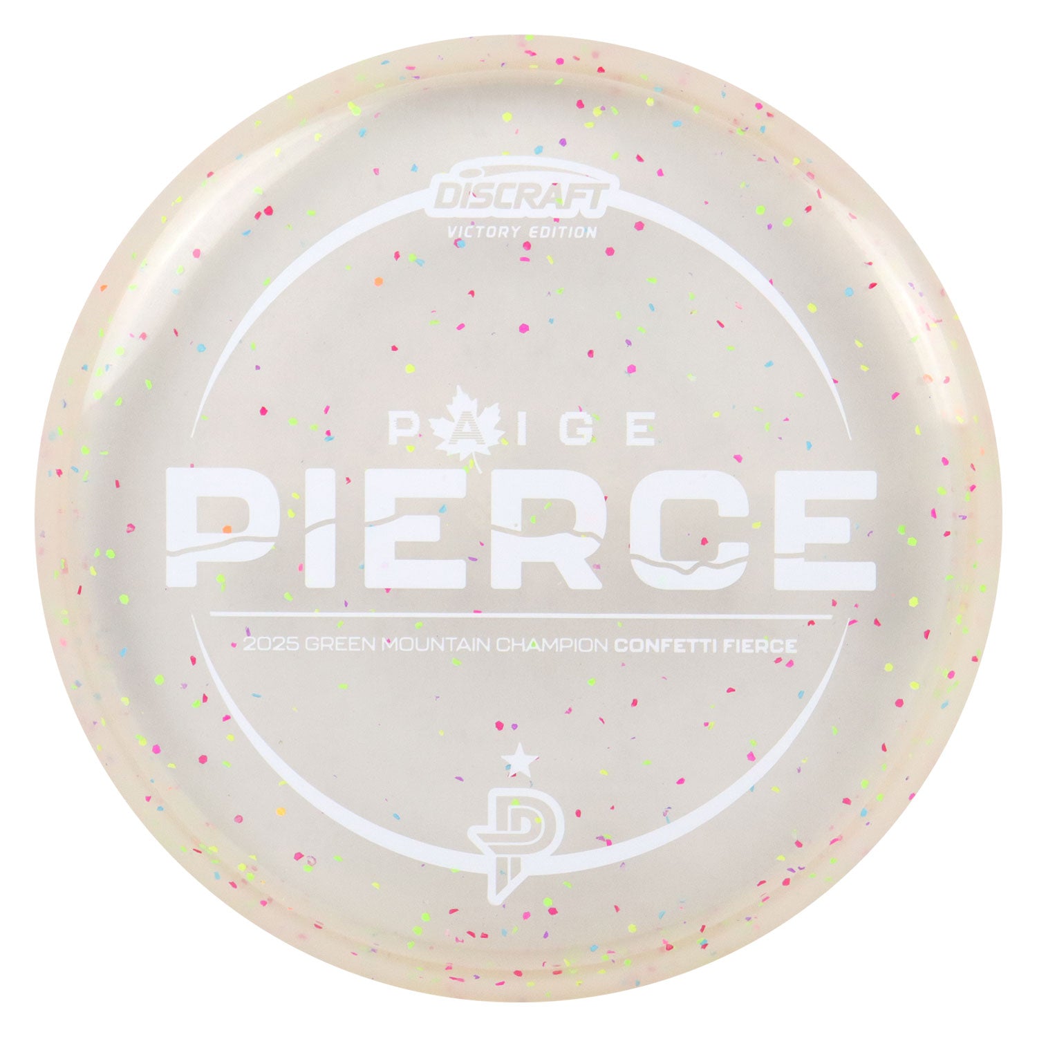 The Paige Pierce Victory Edition Fierce comes in Z Confetti plastic to mark her Green Mountain Championship win, part of an incredible 15-win streak that has defined her dominance on the professional level. Known for its straight, controllable flight and subtle finish, the Fierce is a favorite among players of all skill levels.