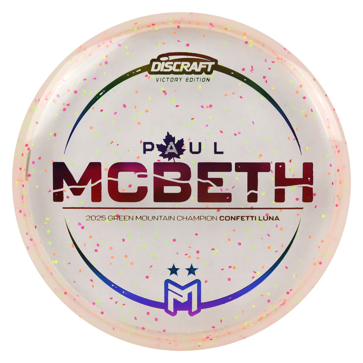 Celebrate greatness with the Paul McBeth Victory Edition Luna. Released in Z Confetti, this special edition honors Paul’s impressive win at the Green Mountain Championship—his second DGPT victory of the season. The Luna is already one of the most trusted putters in disc golf, and this limited Victory Edition offers retailers and players alike a collectible piece tied directly to a major achievement in Paul’s 2025 season.