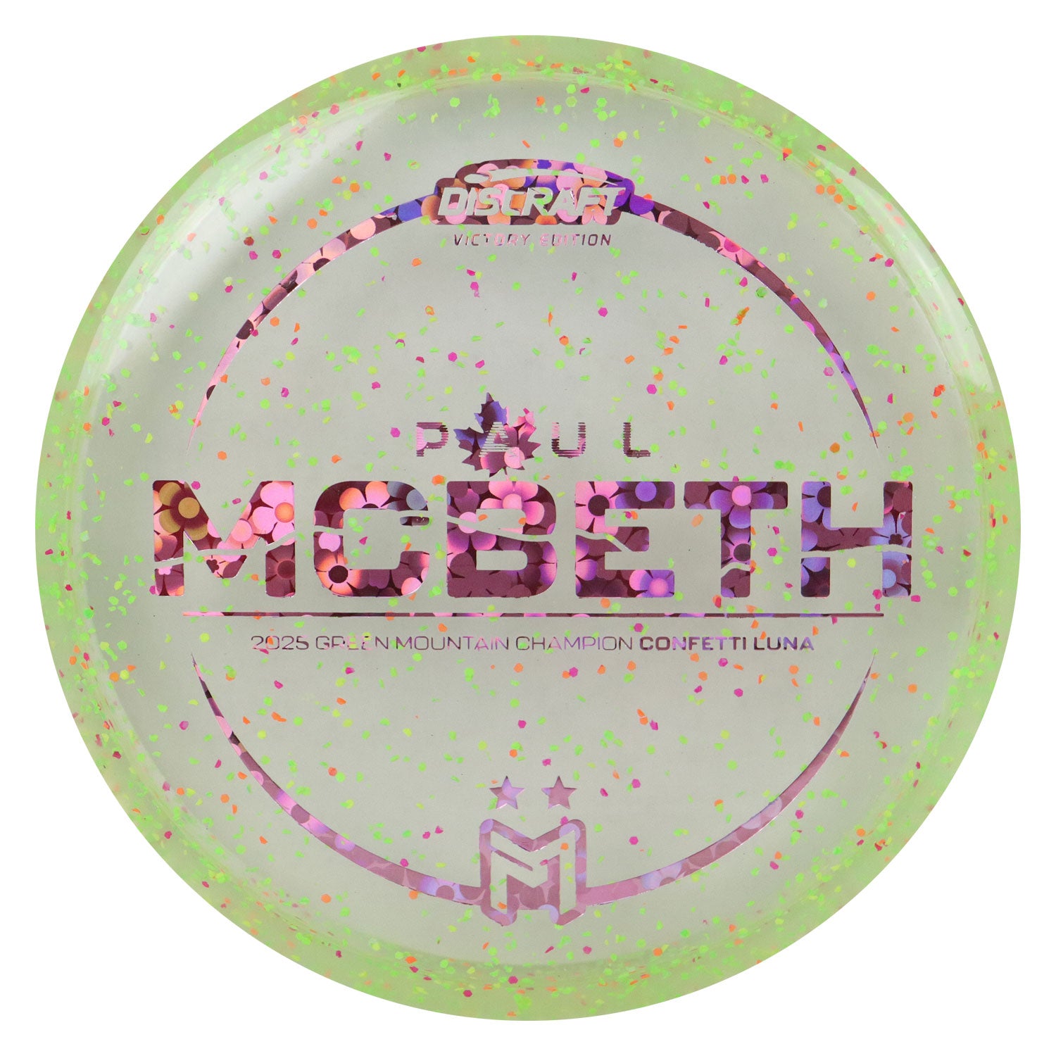 Celebrate greatness with the Paul McBeth Victory Edition Luna. Released in Z Confetti, this special edition honors Paul’s impressive win at the Green Mountain Championship—his second DGPT victory of the season. The Luna is already one of the most trusted putters in disc golf, and this limited Victory Edition offers retailers and players alike a collectible piece tied directly to a major achievement in Paul’s 2025 season.