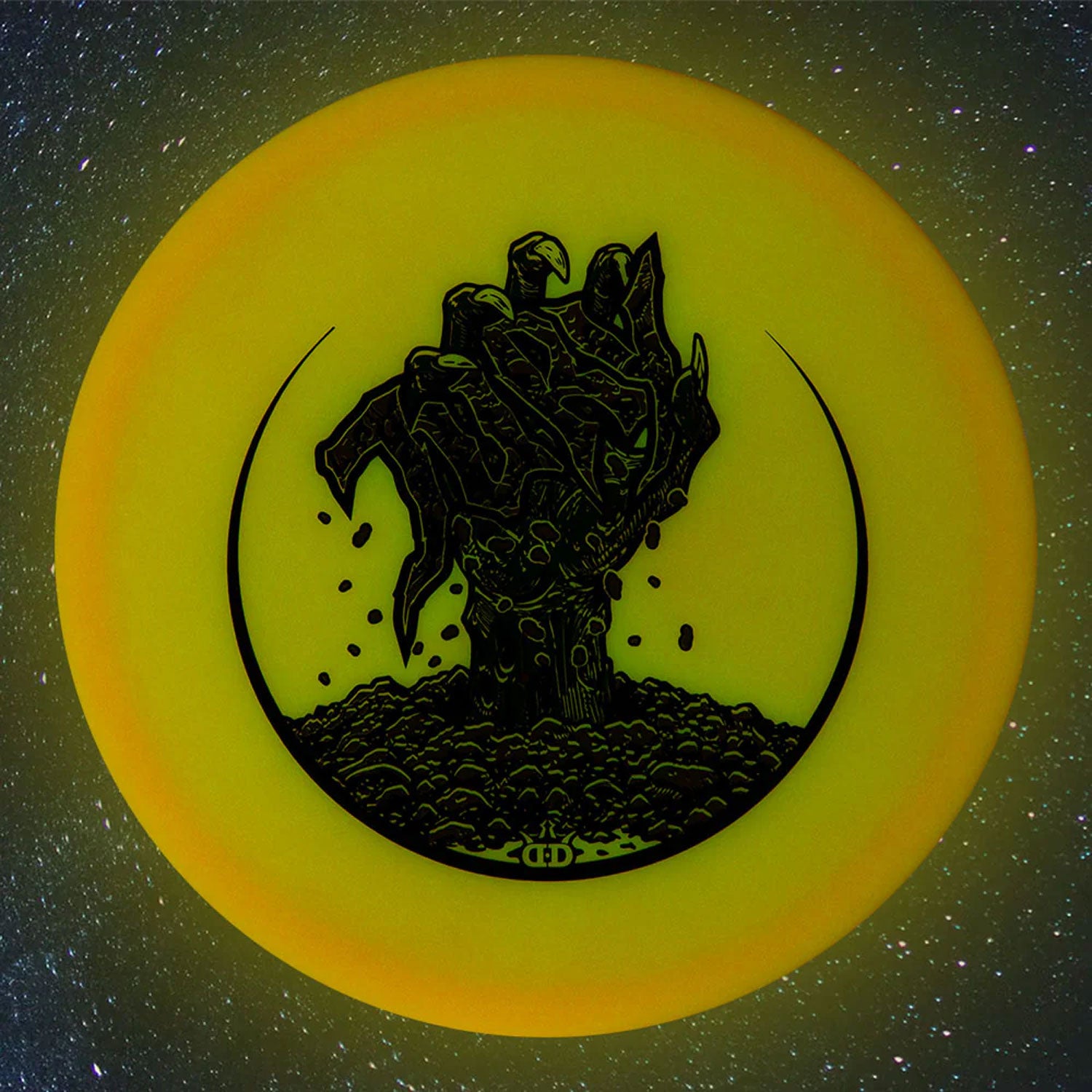 Step into the court of shadows with the Moonshine Jury, a chilling Halloween release from Dynamic Discs. Featuring a haunting custom stamp that brings eerie justice to the night, this disc isn’t just a collectible, it’s built to perform when the sun goes down. Molded in our glow-in-the-dark Moonshine plastic, the Jury shines with durability, grip, and a spooky glow that lights up every haunted fairway.