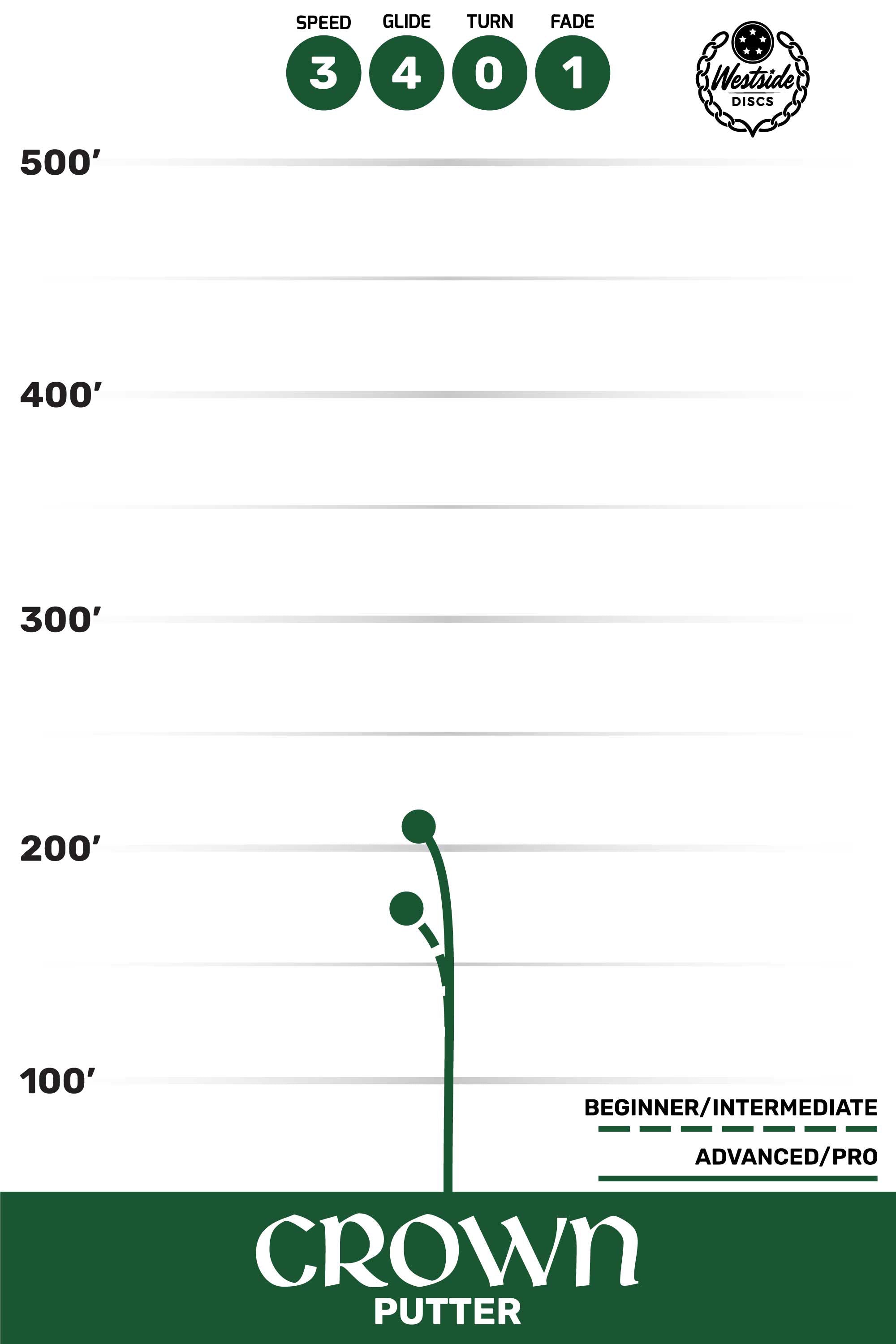 The Crown is a putter for players that like a beaded rim putter, stable flight, and consistency. A stable flyer with a good glide makes it a great tool in every bag. Choose the Crown to make all your important putts.