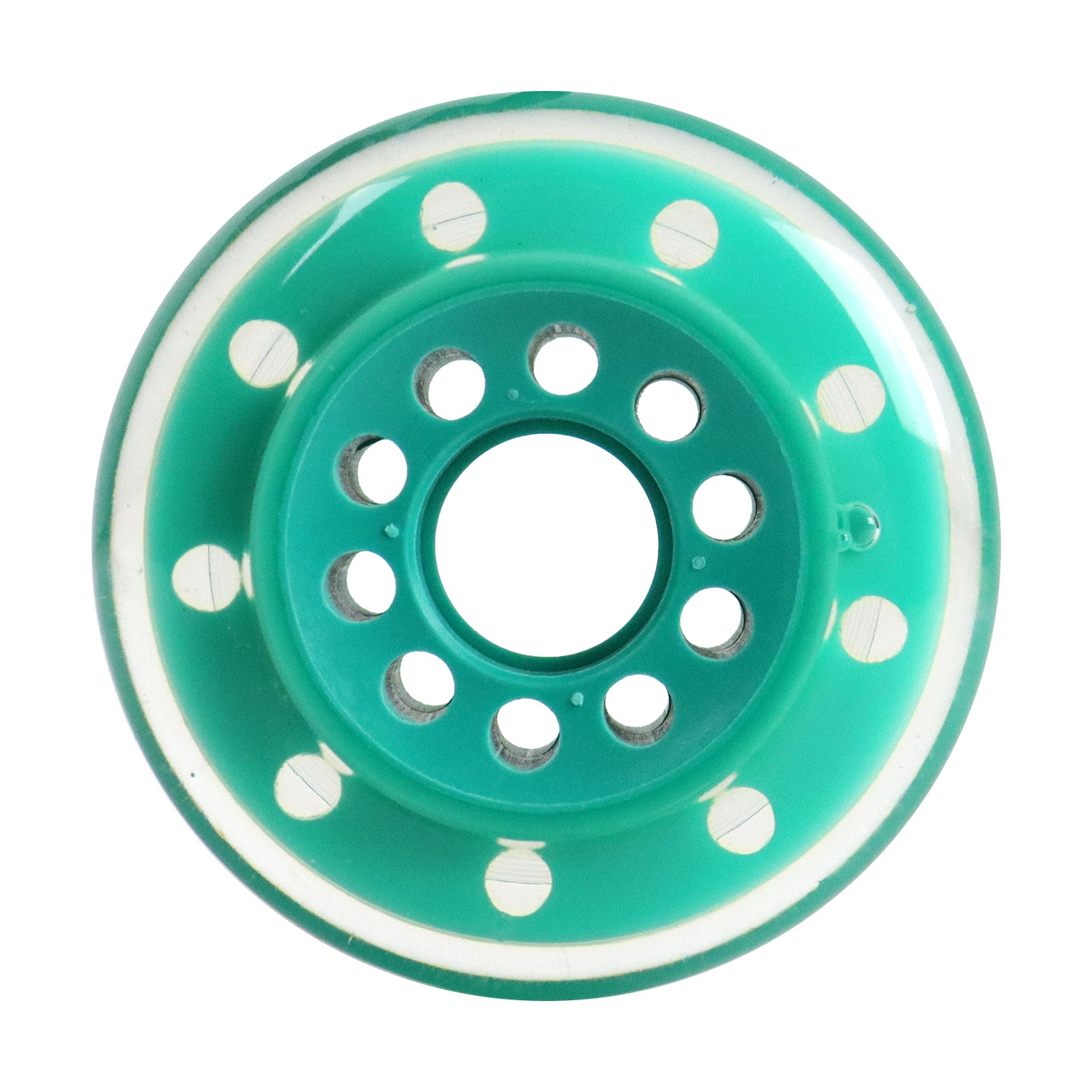 The Teal Labeda Whip is the first real true innovation in wheels since the inception of dual and triple pour wheels. In testing and R&D for over 8 years. It's unique Patent Pending'” EVO core creates a snap back effect that launches you out of every cut and step on the rink. Your wheels have never instantly reacted to your every move, until now.