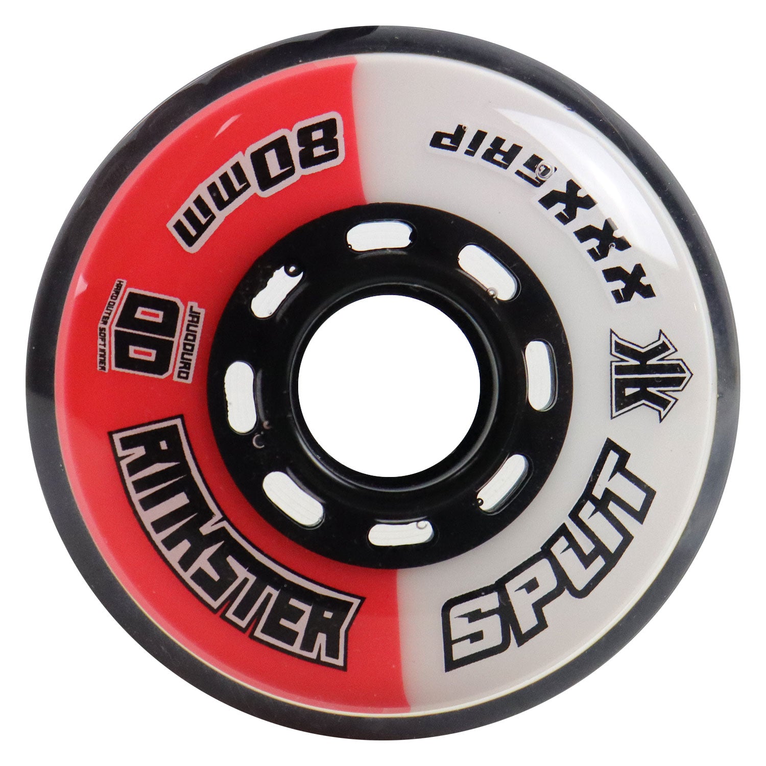 Rink Rat Roller Hockey Wheels Rinkster Split 80mm XXX Grip Red/White 8-Pack