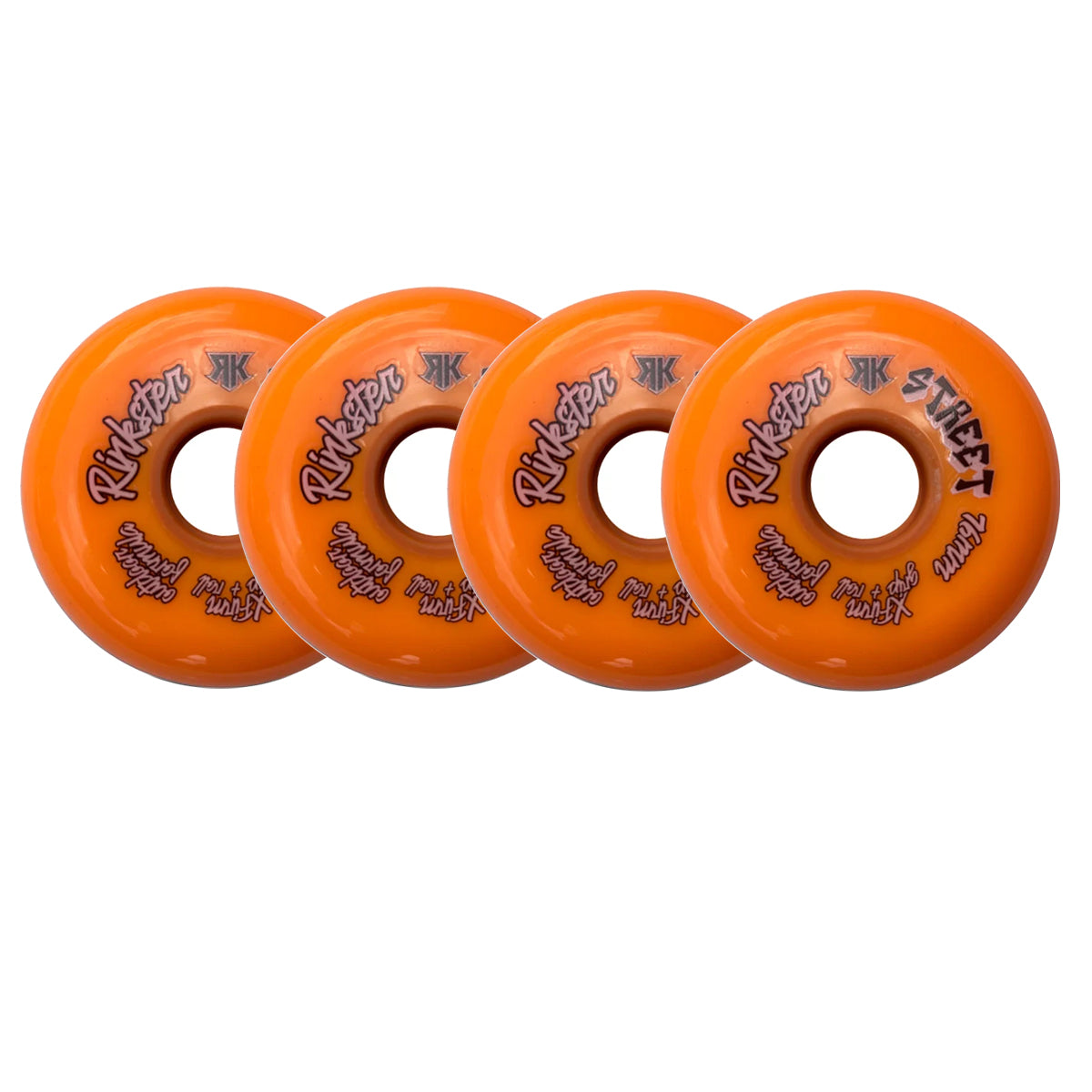The all-new Rinkster Street wheel brings unbeatable value and unmatched control to the asphalt. Designed with a wider contact patch and a durable outdoor formula, this wheel is built to withstand the grind of outdoor hockey while delivering the grip, stability, and smooth ride players demand. Whether you're ripping slap shots in the cul-de-sac or battling on blacktop courts, the X-Wide Outdoor is your go-to wheel for confident, all-around performance—at a price that makes sense.