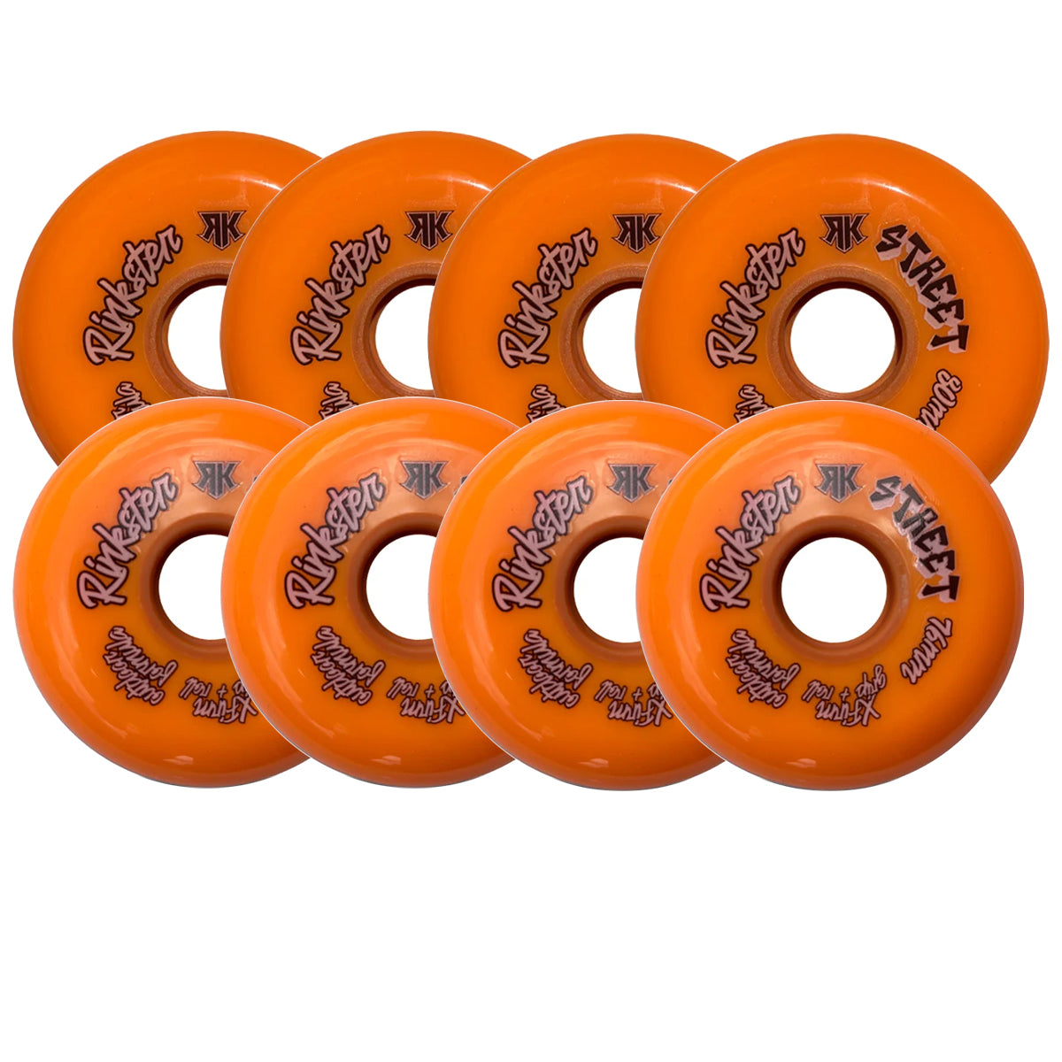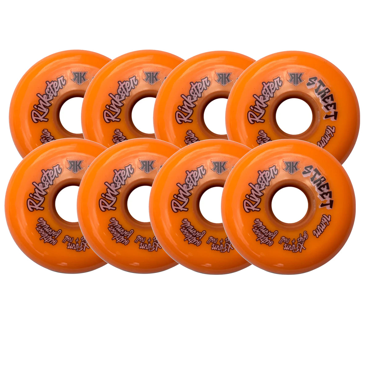 The all-new Rinkster Street wheel brings unbeatable value and unmatched control to the asphalt. Designed with a wider contact patch and a durable outdoor formula, this wheel is built to withstand the grind of outdoor hockey while delivering the grip, stability, and smooth ride players demand. Whether you're ripping slap shots in the cul-de-sac or battling on blacktop courts, the X-Wide Outdoor is your go-to wheel for confident, all-around performance—at a price that makes sense.