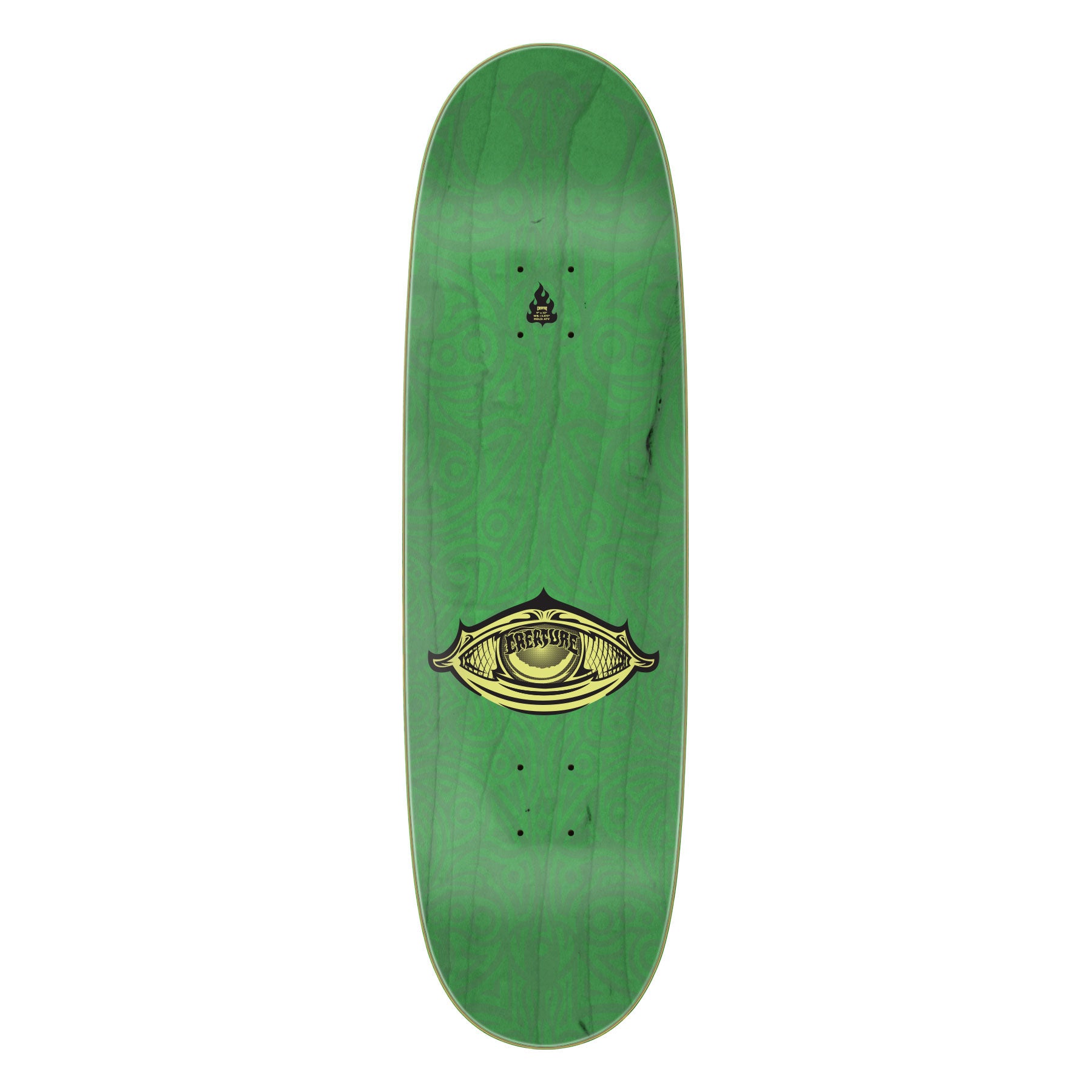 Cast from deadly spells, we give you the Conjure two-piece team offering. Decadent and all-seeing raised ink graphics. 7 ply North American Maple pressed individually using epoxy - making a strong, responsive deck with long lasting pop and consistent concave and kick. ATV is a universal medium-depth concave with symmetrical nose and tail kick that performs well in all terrains on a wide variety of shapes - for anybody, anywhere.