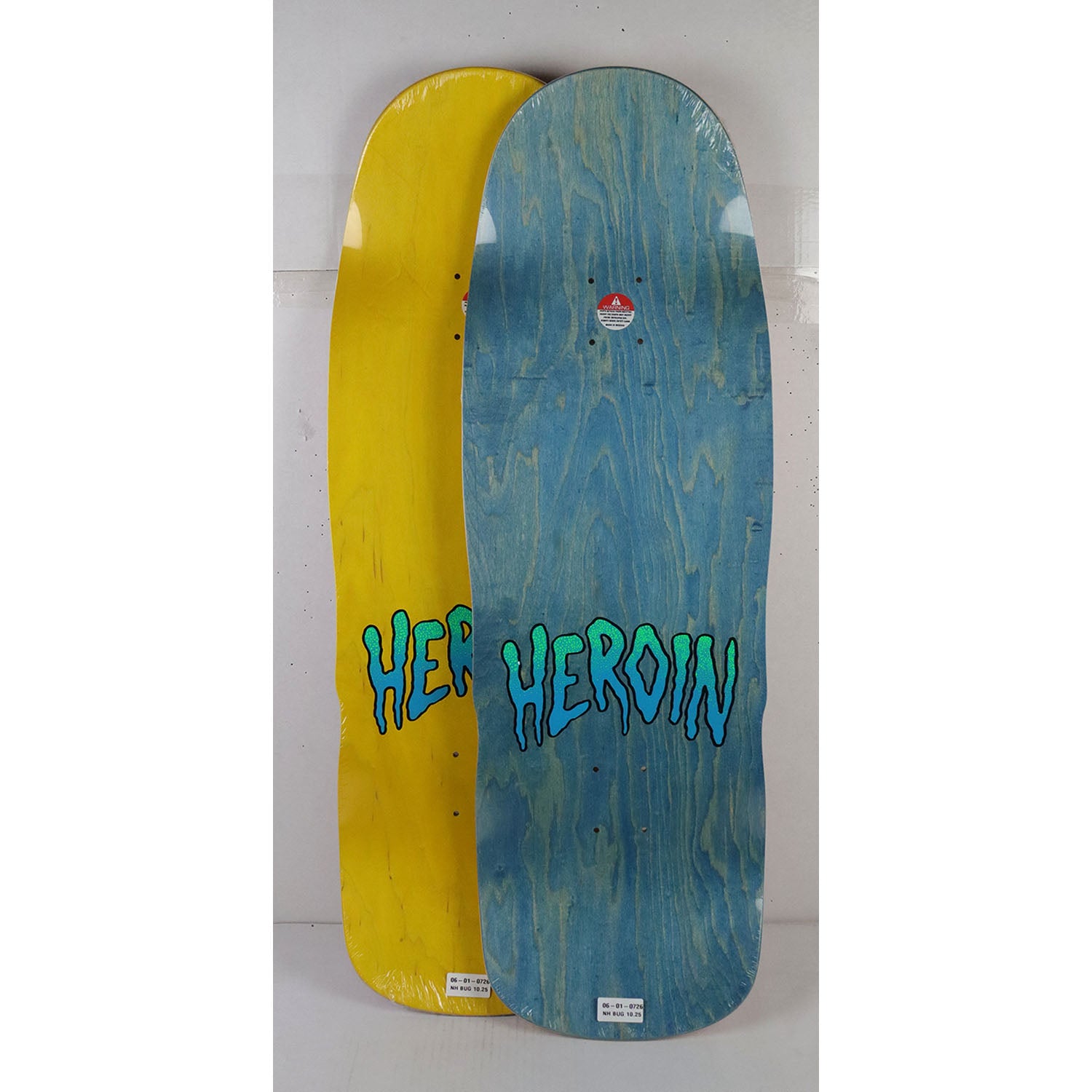 This board comes in ASSORTED COLORS. Heroin Decks are constructed with premium, 7-Ply North American Maple. This board measures 10.4" x 30.75" with a 14.5" wheelbase.