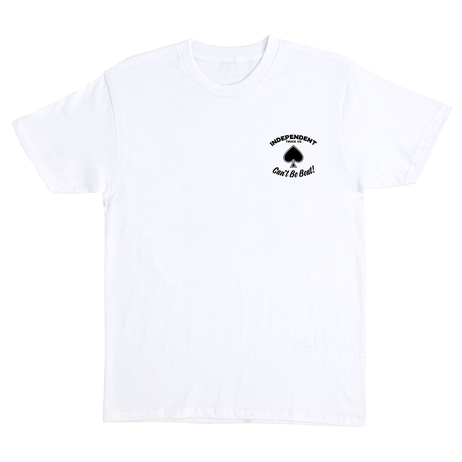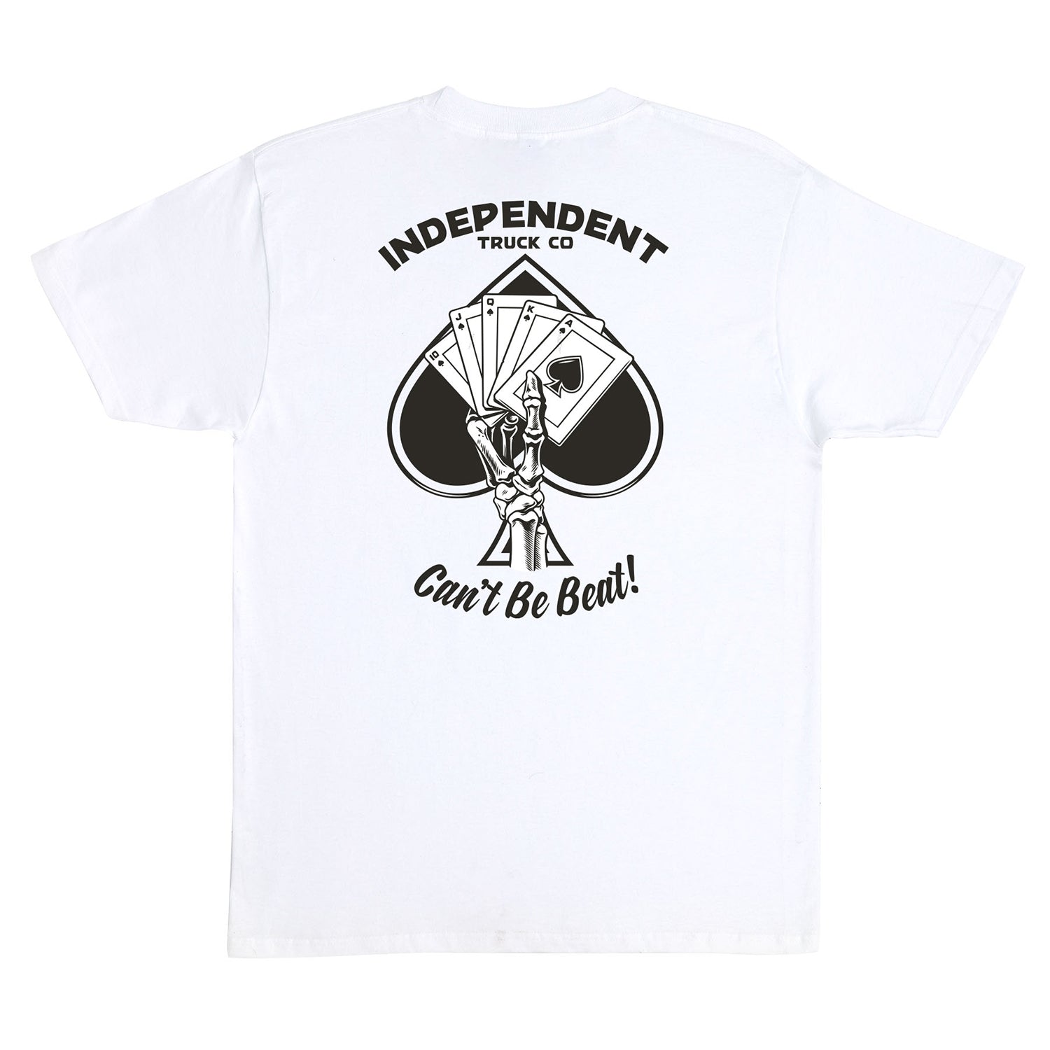 The Independent Royal Flush men's regular-fit, short-sleeve t-shirt features small front and large back Independent Royal Flush artwork printed in soft hand ink.