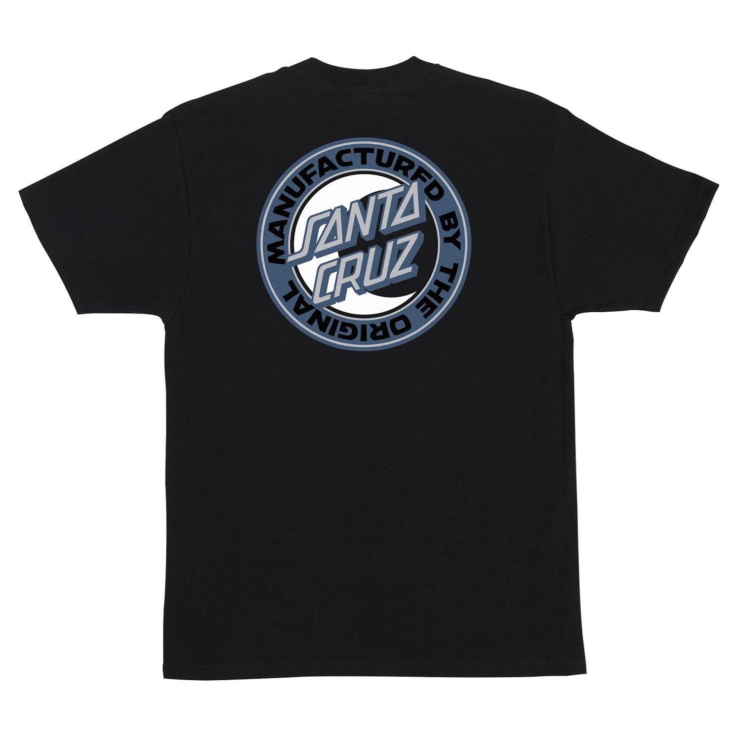 The Santa Cruz MFG Moon Dot men's regular fit short-sleeve t-shirt features small front and large back Santa Cruz MFG Moon Dot artwork printed in soft hand ink.