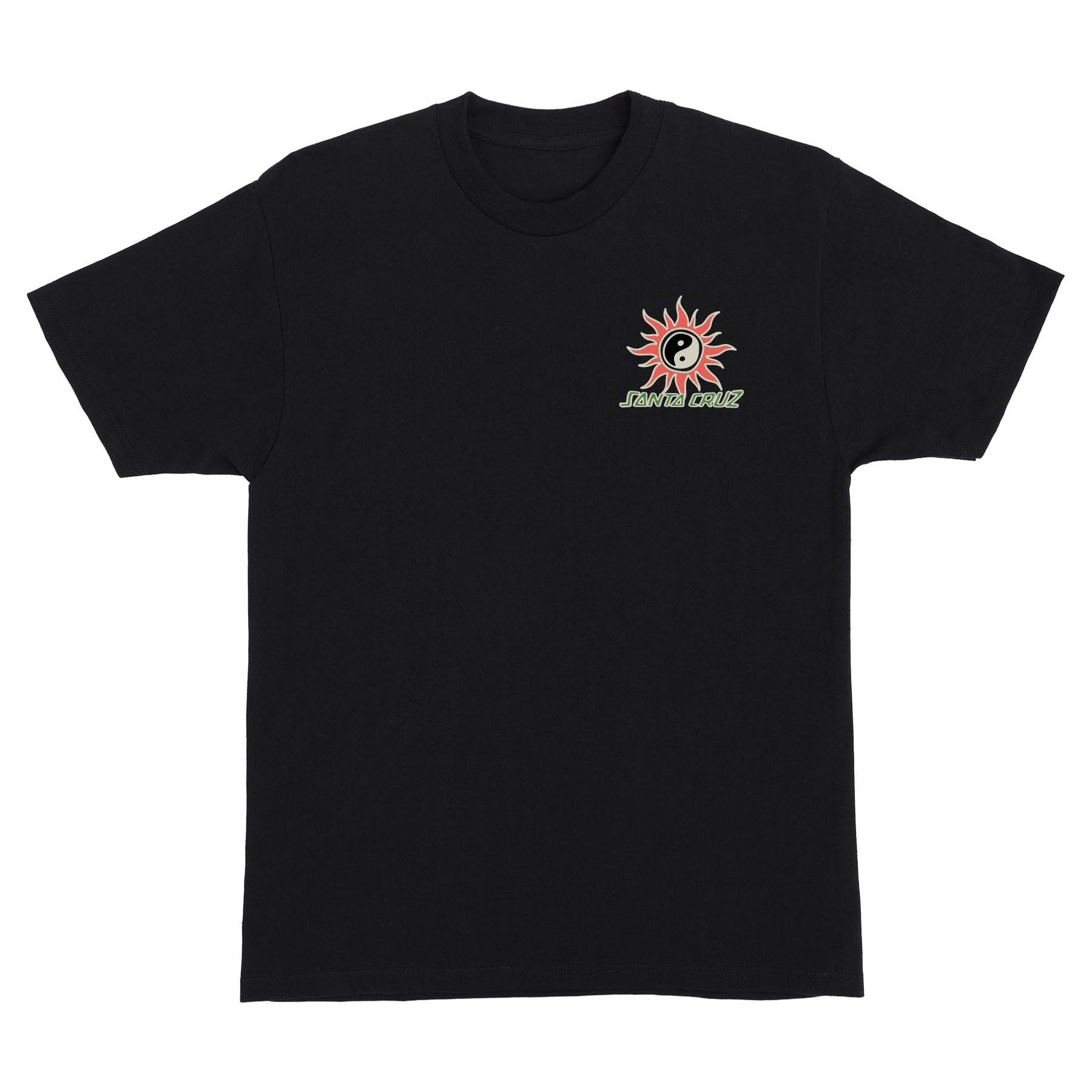 The Santa Cruz Sol Spiral men's regular fit short-sleeve t-shirt features small front and large back Santa Cruz Sol Spiral artwork printed in soft hand ink and puff prints.