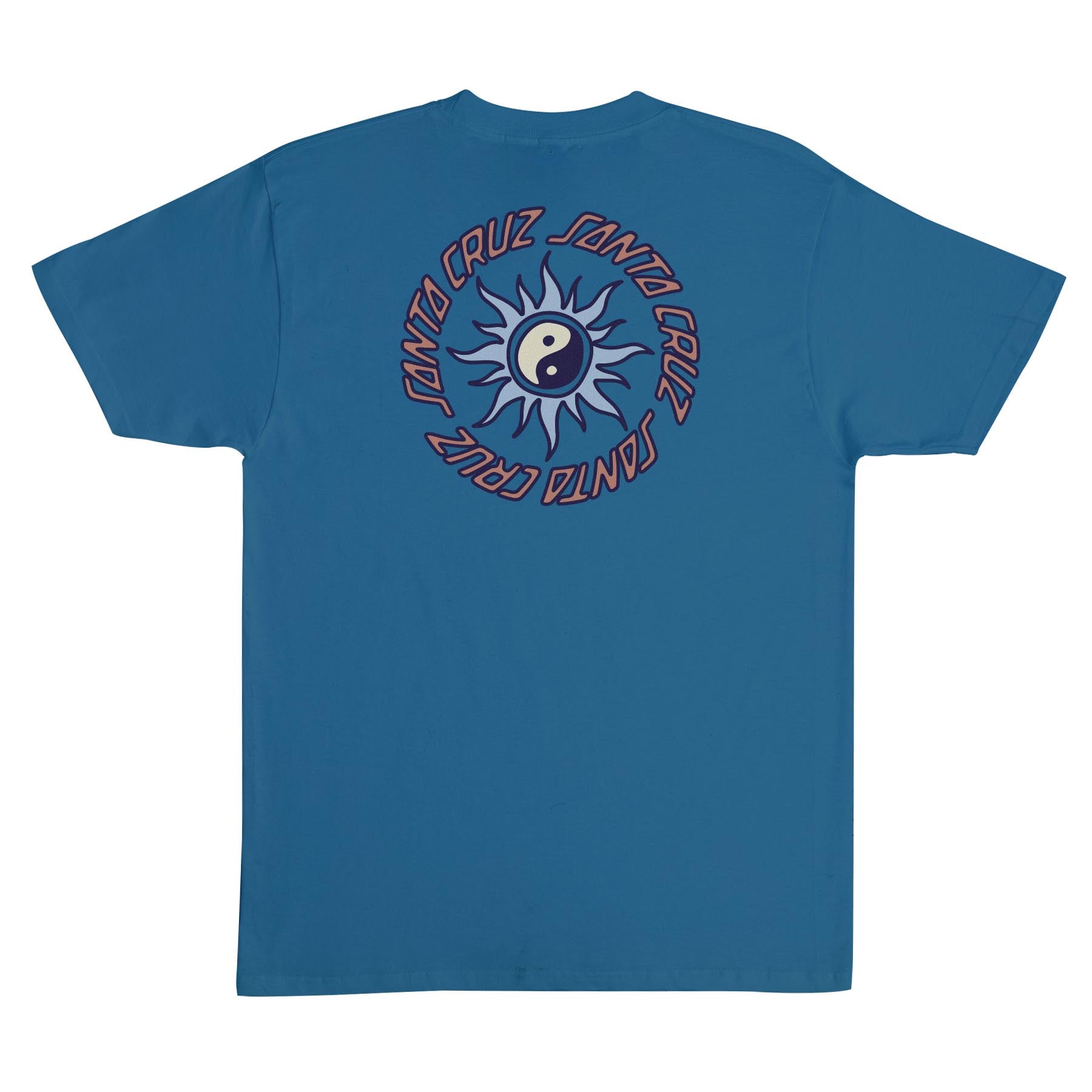 The Santa Cruz Sol Spiral men's regular fit short-sleeve t-shirt features small front and large back Santa Cruz Sol Spiral artwork printed in soft hand ink and puff prints.