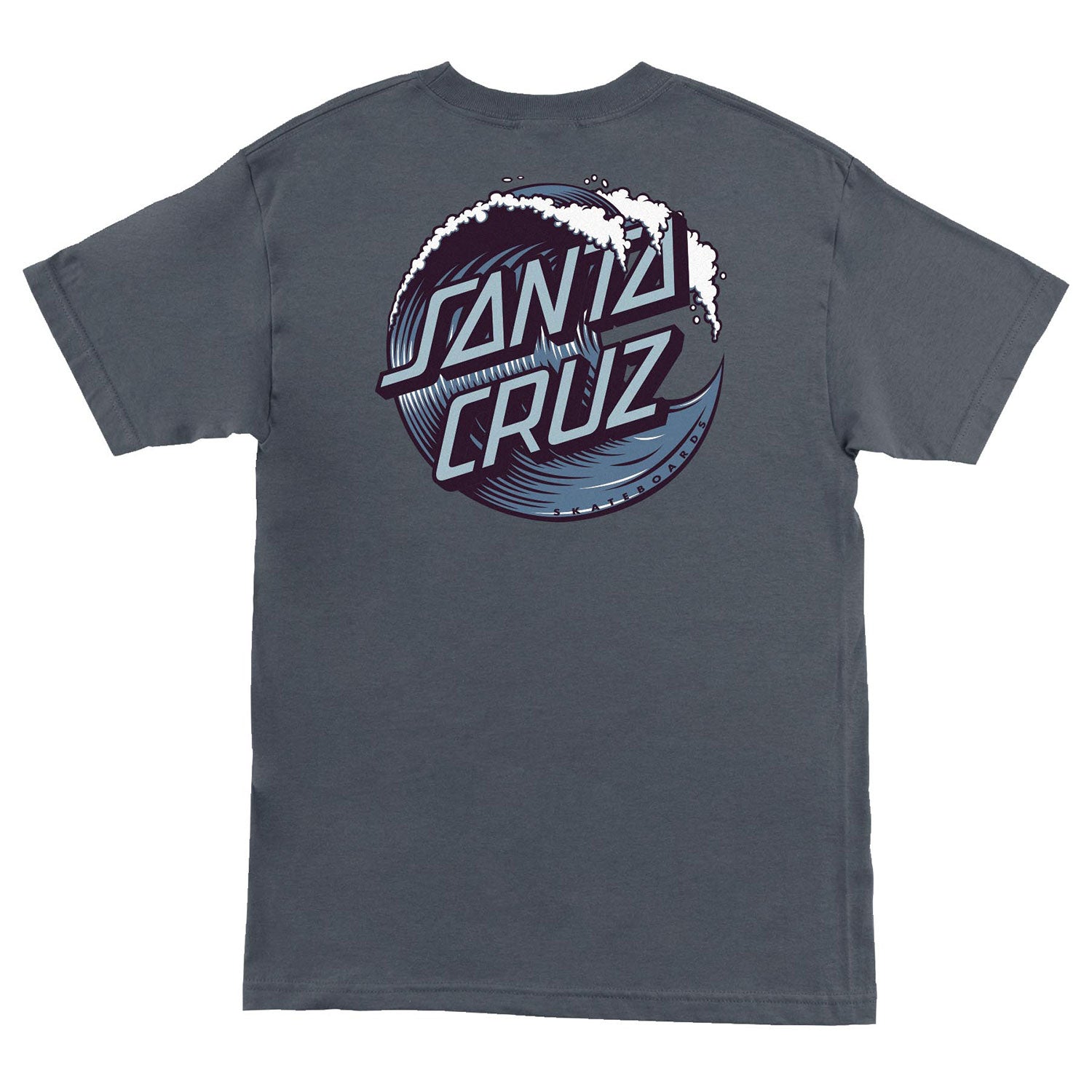 The Santa Cruz Wave Dot men's short sleeve regular fit t-shirt features medium front and large back Santa Cruz Wave Dot logos printed in soft hand ink.