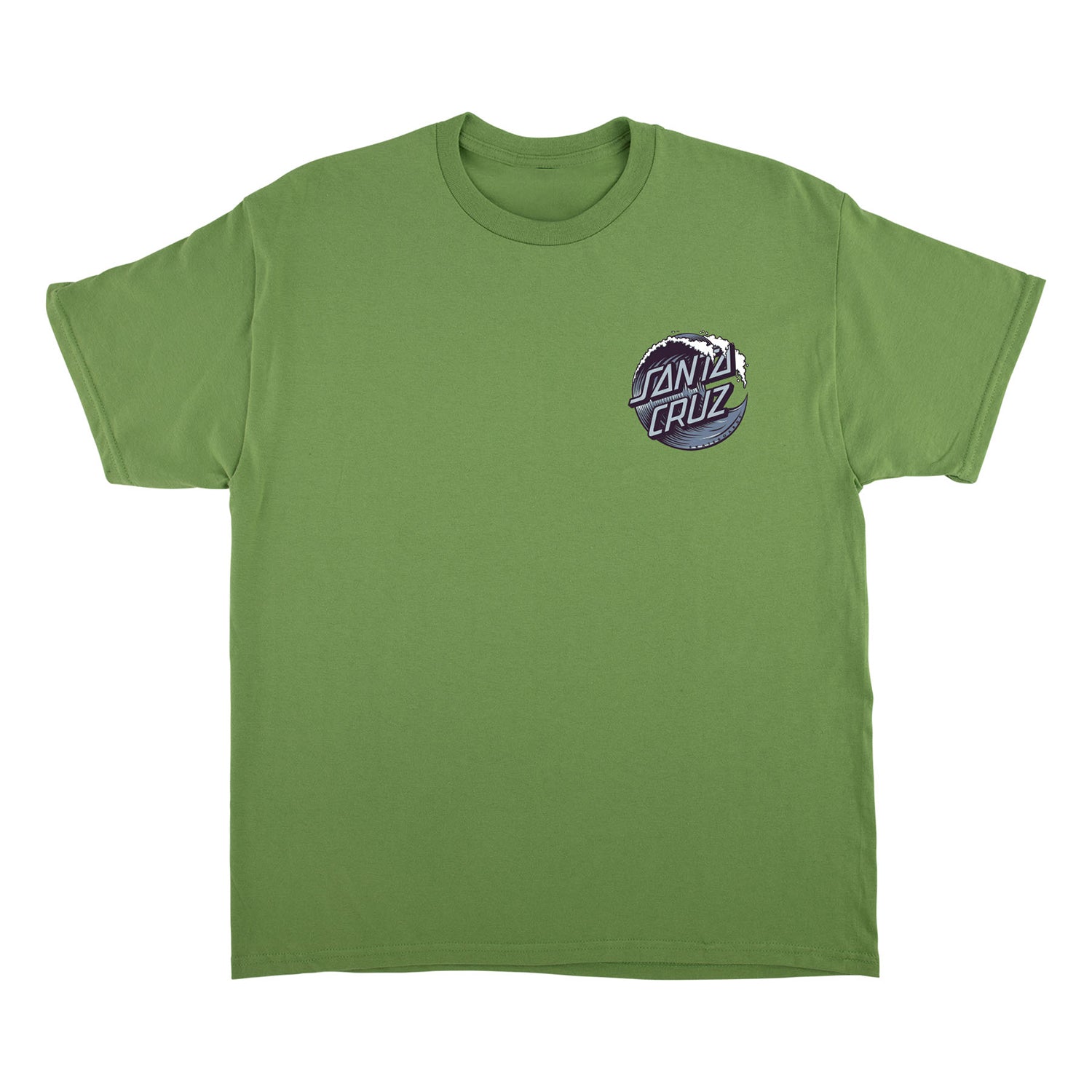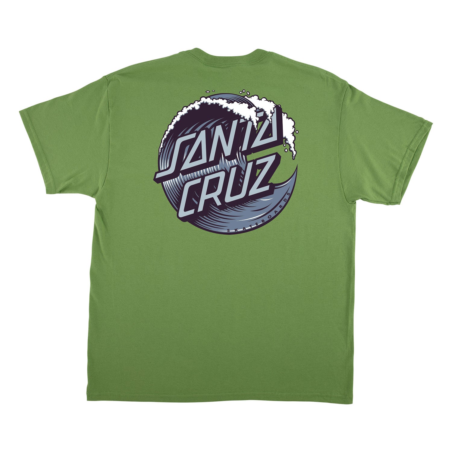 The Santa Cruz Wave Dot men's short sleeve regular fit t-shirt features medium front and large back Santa Cruz Wave Dot logos printed in soft hand ink.