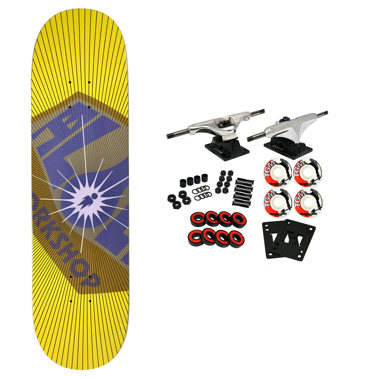 7-Ply North American Maple Skateboard Deck from Alien Workshop. Agile Shape. Manufactured at BBS. This board measures 8.375" x 32.125" with a 14.375" wheelbase. Assorted Top Stains. Comes with Core trucks, 52mm TGM logo wheels, Amp abec 5 bearings, Black Diamond Griptape, risers, and hardware. Core trucks are light weight and feature heavy duty aluminum with grade 8 steel kingpins and axles, as well as USA made bushings and pivot cups. 52mm 99A are the perfect wheels for both street and park skating. Like the name states, Amp bearings are stimulants for your wheels! Light synthetic oil, Delrin Crowns, and Rubber Serviceable Shields are a few of the things that makes these bearings one of the best Abec 5 rated bearings on the market. Arrives un-assembled which allows for customization and a feeling of accomplishment. Skaters love building their boards! Easy to assemble!