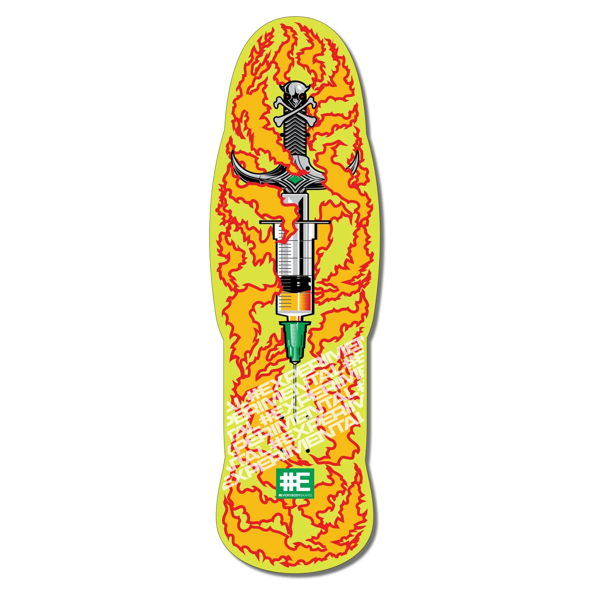 Everybody Skates Experimental Shaped Decks bridge the gap between standard size boards and big boards. This is a custom, limited run shape. Everybody Skates decks are constructed with Premium, 7-Ply North American Maple. This board measures 10.745" x 34.625" with a 15.662" wheelbase. Comes with Core trucks, 60mm 99A wheels, Amp abec 5 bearings, Black Diamond Griptape, risers, and hardware. Core trucks are light weight and feature heavy duty aluminum with grade 8 steel kingpins and axles, as well as USA made bushings and pivot cups. 60mm 99A are the perfect wheels for both street and park skating. Like the name states, Amp bearings are stimulants for your wheels! Light synthetic oil, Delrin Crowns, and Rubber Serviceable Shields are a few of the things that makes these bearings one of the best Abec 5 rated bearings on the market. Arrives un-assembled which allows for customization and a feeling of accomplishment. Skaters love building their boards! Easy to assemble!