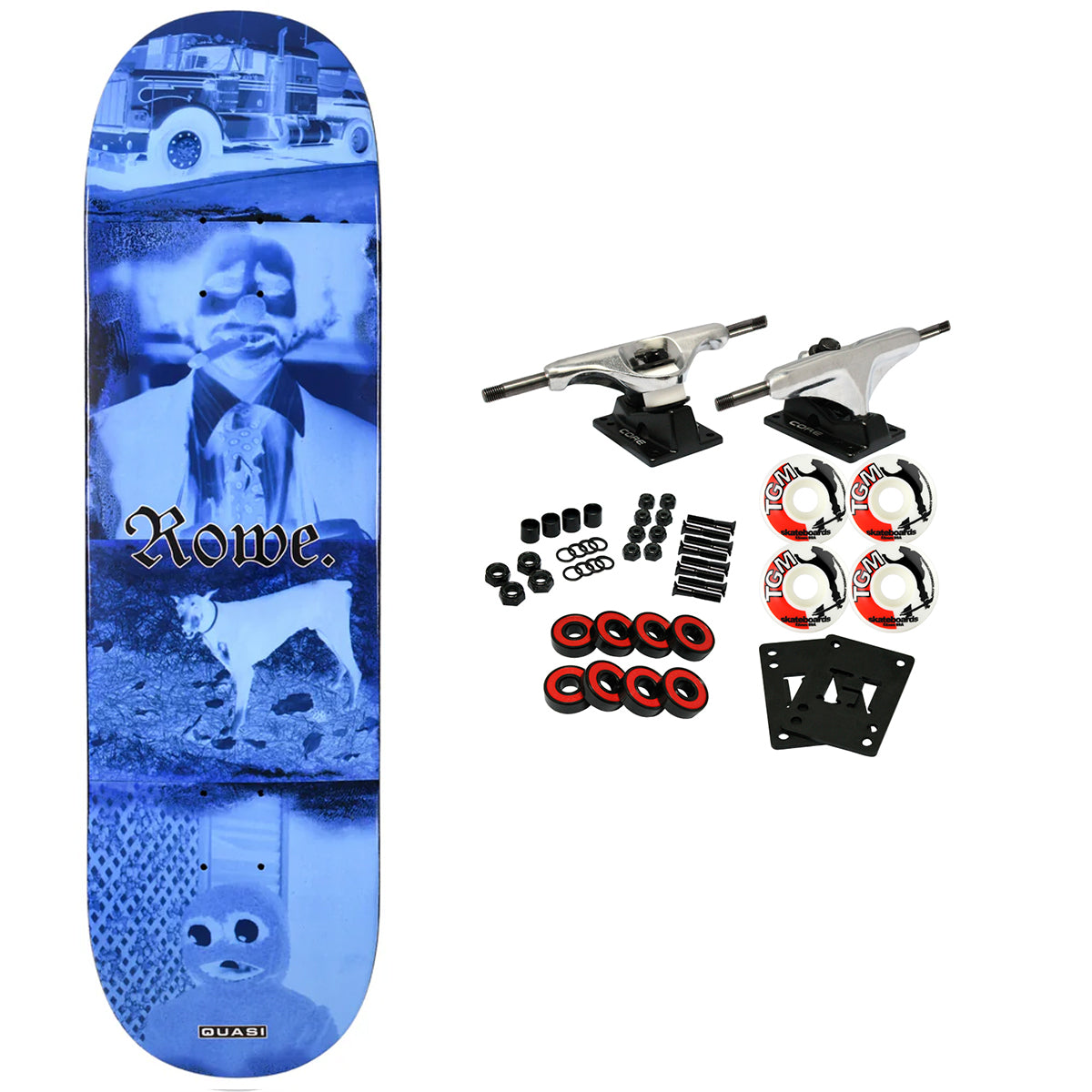7-Ply North American Maple Skateboard Deck from Quasi. Q63 Shape. Manufactured at BBS. This board measures 8.5" x 32.125" with a 14.25" wheelbase. Full Dip. Comes with Core trucks, 52mm TGM logo wheels, Amp abec 5 bearings, Black Diamond Griptape, risers, and hardware. Core trucks are light weight and feature heavy duty aluminum with grade 8 steel kingpins and axles, as well as USA made bushings and pivot cups. 52mm 99A are the perfect wheels for both street and park skating. Like the name states, Amp bearings are stimulants for your wheels! Light synthetic oil, Delrin Crowns, and Rubber Serviceable Shields are a few of the things that makes these bearings one of the best Abec 5 rated bearings on the market. Arrives un-assembled which allows for customization and a feeling of accomplishment. Skaters love building their boards! Easy to assemble!