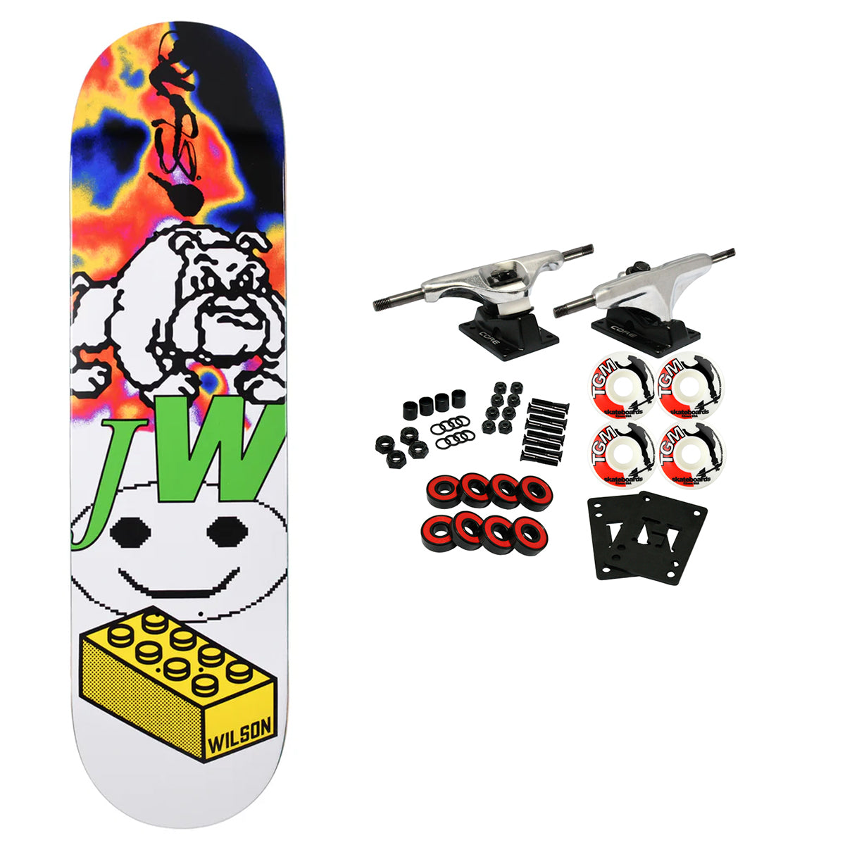 7-Ply North American Maple Skateboard Deck from Quasi. Q74 Shape. Manufactured at BBS. This board measures 8.25" x 32.375" with a 14.375" wheelbase. Assorted Top Stains. Comes with Core trucks, 52mm TGM logo wheels, Amp abec 5 bearings, Black Diamond Griptape, risers, and hardware. Core trucks are light weight and feature heavy duty aluminum with grade 8 steel kingpins and axles, as well as USA made bushings and pivot cups. 52mm 99A are the perfect wheels for both street and park skating. Like the name states, Amp bearings are stimulants for your wheels! Light synthetic oil, Delrin Crowns, and Rubber Serviceable Shields are a few of the things that makes these bearings one of the best Abec 5 rated bearings on the market. Arrives un-assembled which allows for customization and a feeling of accomplishment. Skaters love building their boards! Easy to assemble!