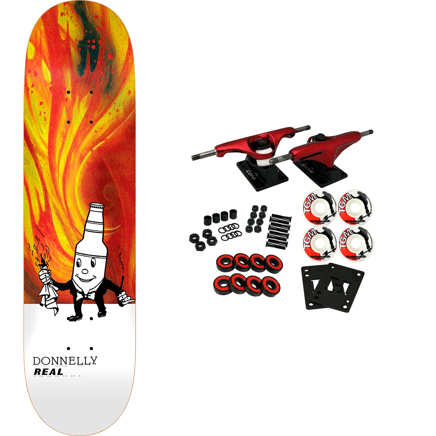 Real R1 Construction. Not too steep, not too mellow. North American Maple. Measures 8.5" x 31.8" with a 14.25" wheelbase. Comes with Core trucks, 52mm TGM logo wheels, Amphetamine abec 5 bearings, Black Diamond Griptape, risers, and hardware. Core trucks are light weight and feature heavy duty aluminum with grade 8 steel kingpins and axles, as well as USA made bushings and pivot cups. 52mm 99A are the perfect wheels for both street and park skating. Like the name states, Amphetamine bearings are stimulants for your wheels! Light synthetic oil, Delrin Crowns, and Rubber Serviceable Shields are a few of the things that makes these bearings one of the best Abec 5 rated bearings on the market. Arrives un-assembled which allows for customization and a feeling of accomplishment. Skaters love building their boards! Easy to assemble!