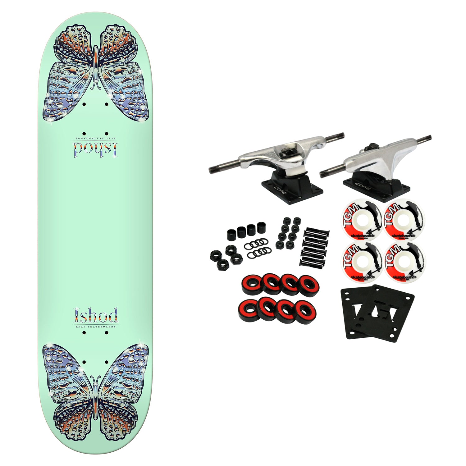 Real boards are constructed with Premium 7-Ply North American Maple. Ishods Twin Tail Shape features identical 6.625" tails and symmetrical shape. The Mariposa Chrome twin graphics feature silver foil behind the butterflys. This deck measures 8.5" x 32.2" with a 14.5" wheelbase. Comes with Core trucks, 52mm TGM logo wheels, Amp abec 5 bearings, Black Diamond Griptape, risers, and hardware. Core trucks are light weight and feature heavy duty aluminum with grade 8 steel kingpins and axles, as well as USA made bushings and pivot cups. 52mm 99A are the perfect wheels for both street and park skating. Like the name states, Amp bearings are stimulants for your wheels! Light synthetic oil, Delrin Crowns, and Rubber Serviceable Shields are a few of the things that makes these bearings one of the best Abec 5 rated bearings on the market. Arrives un-assembled which allows for customization and a feeling of accomplishment. Skaters love building their boards! Easy to assemble!