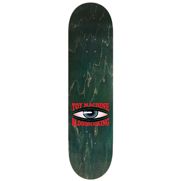 DECK: Toy Machine skateboard decks are constructed with premium, 7-ply North American maple. Top stain colors vary. This board measures 8.25" x 31.63" with a 14" wheelbase.