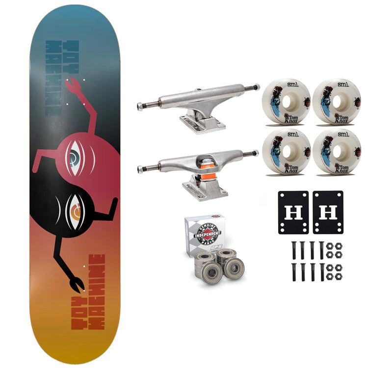 Includes hand selected components to make a premium complete that even the pros would be proud of. Top tier parts from leaders in the industry. Includes a Toy Machine Deck, Independent Trucks, Sml Wheels, Independent GP-S Bearings, Black Diamond Griptape, 1" Hardware and Risers.