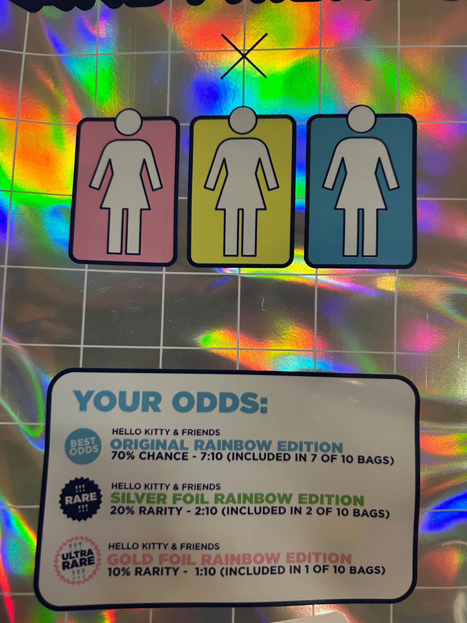 Includes 1 Blind Bag. 3 Variations Possible. Comes sealed in rainbow hologram shrink wrapped bag, keeping the specific rarity hidden until you reveal one of the three unique variations. Decks Rarity Breakdown: Original Rainbow Edition - 70% of final production number, Silver Foil Accents - 20% of final production number, Gold Foil Accents - 10% of final production number.