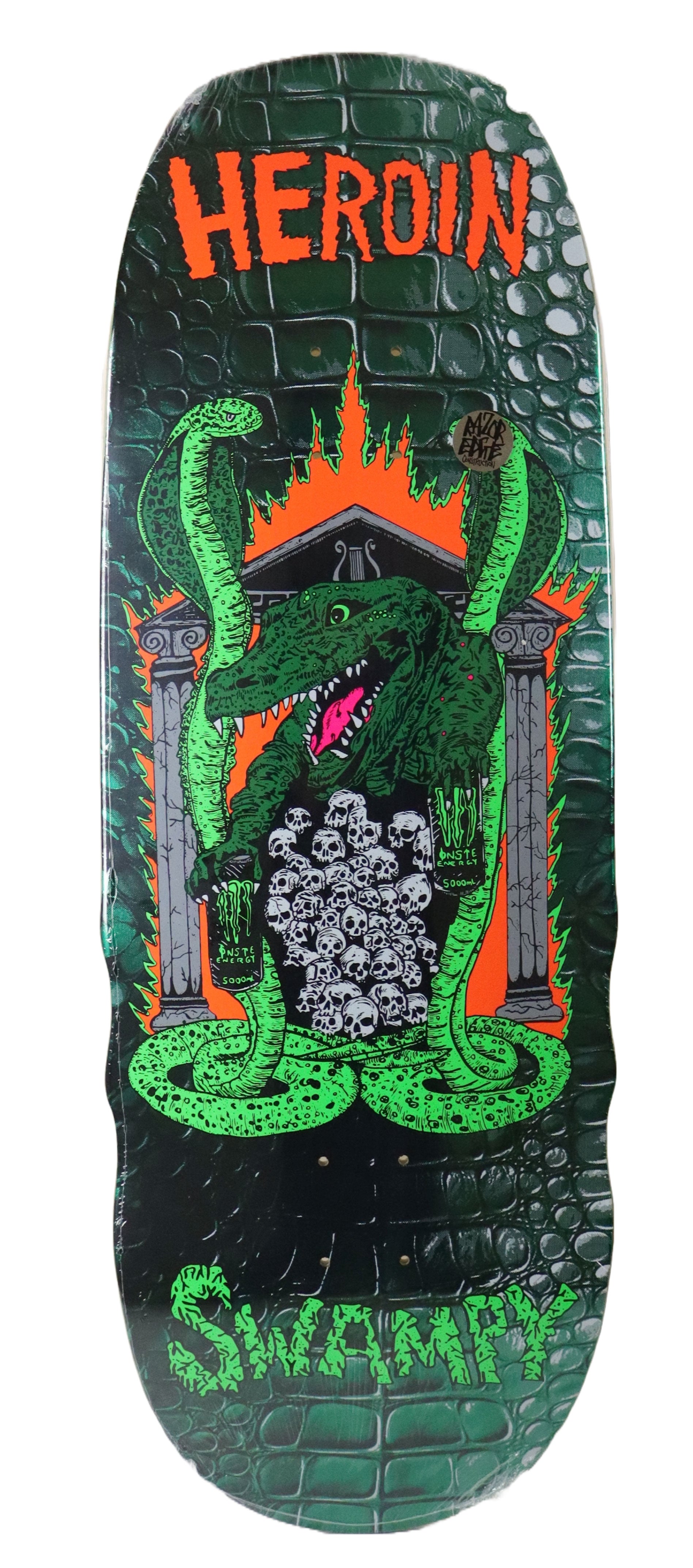 Heroin Skateboard Decks are constructed with premium 7-Ply North American Maple. This board measures 10.6" x 32.1" with a 14.25" wheelbase.